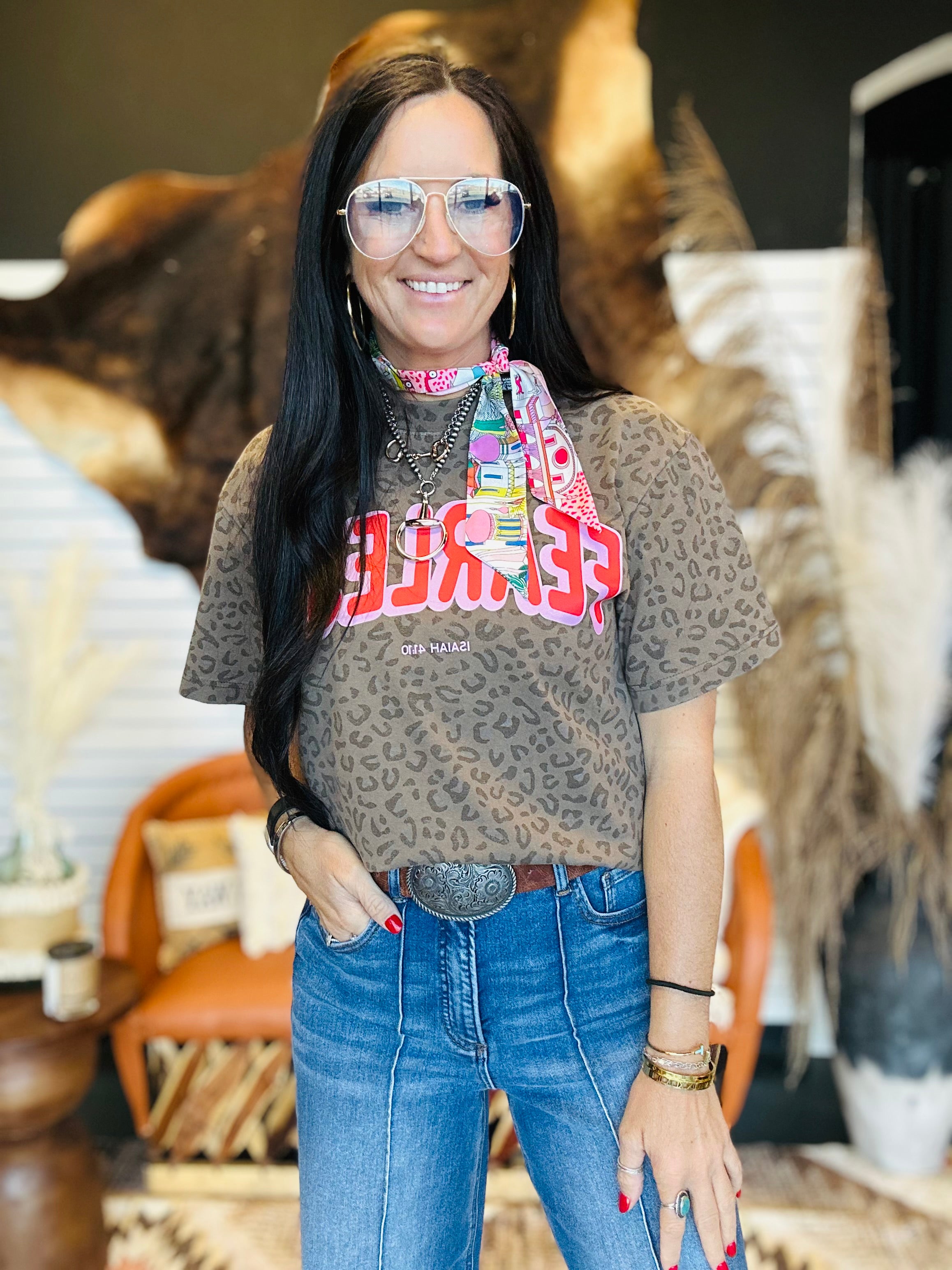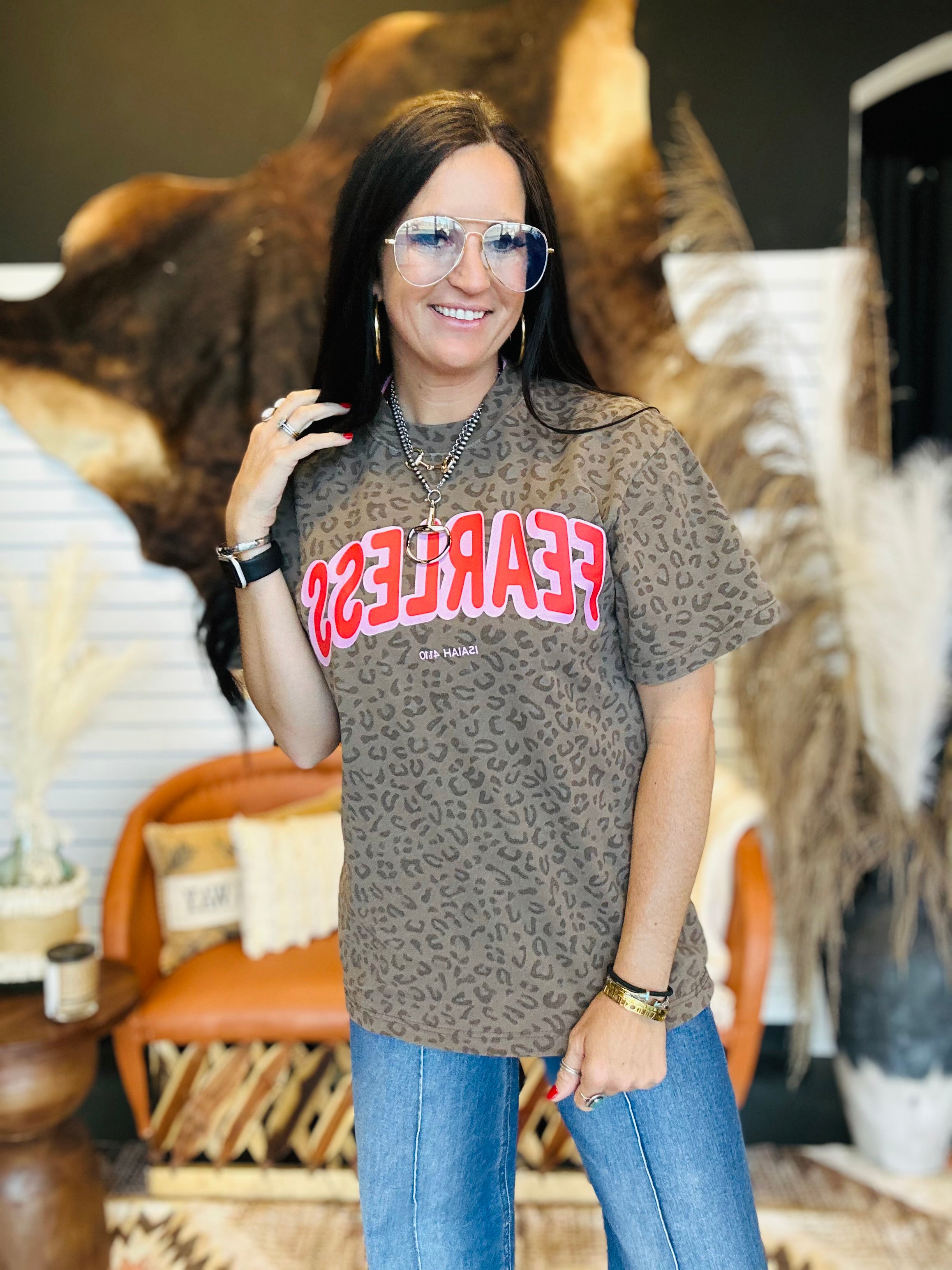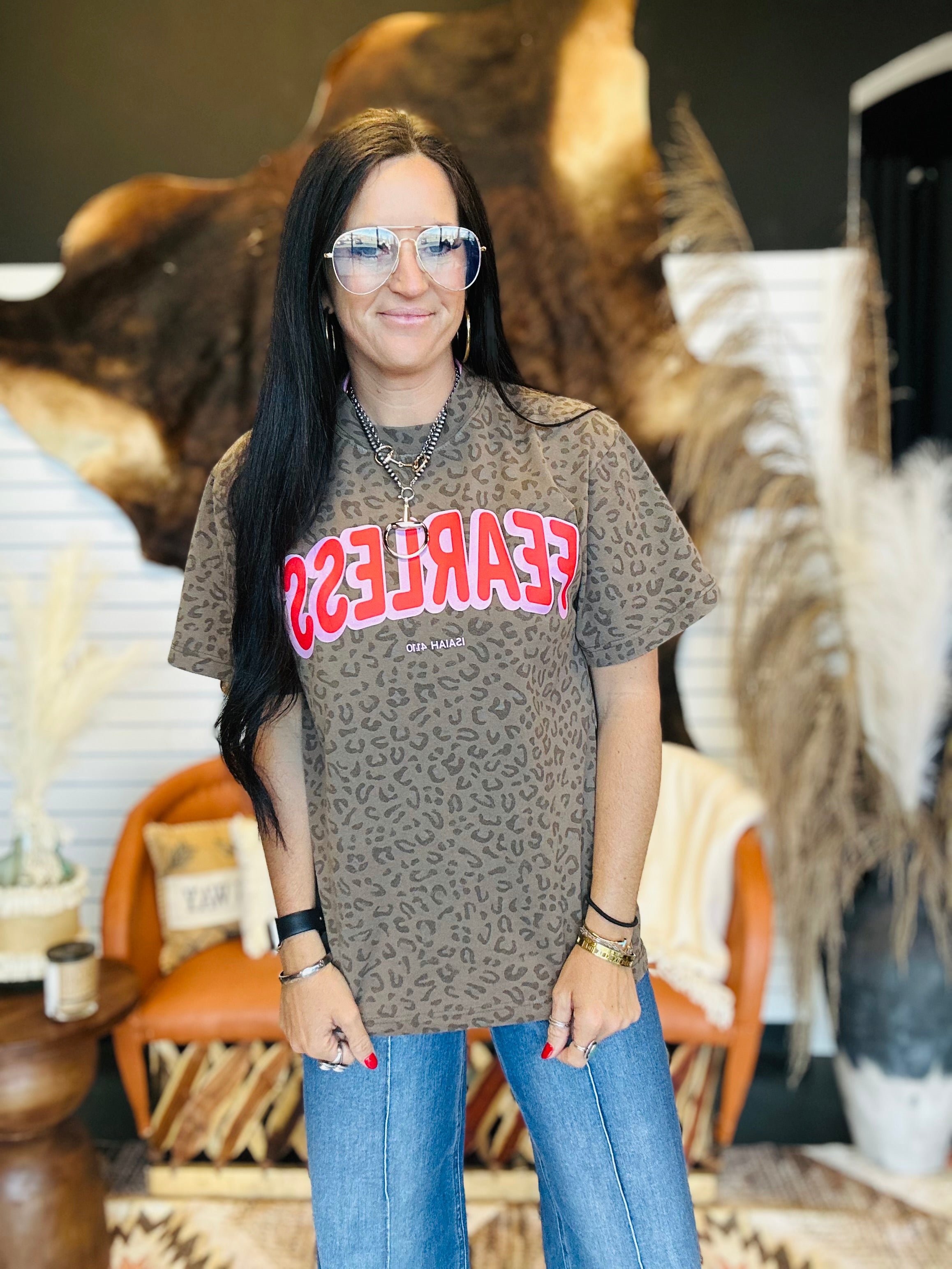 Women’s Leopard “FEARLESS” Isaiah 41:10 Short Sleeve Christian Graphic Tee
