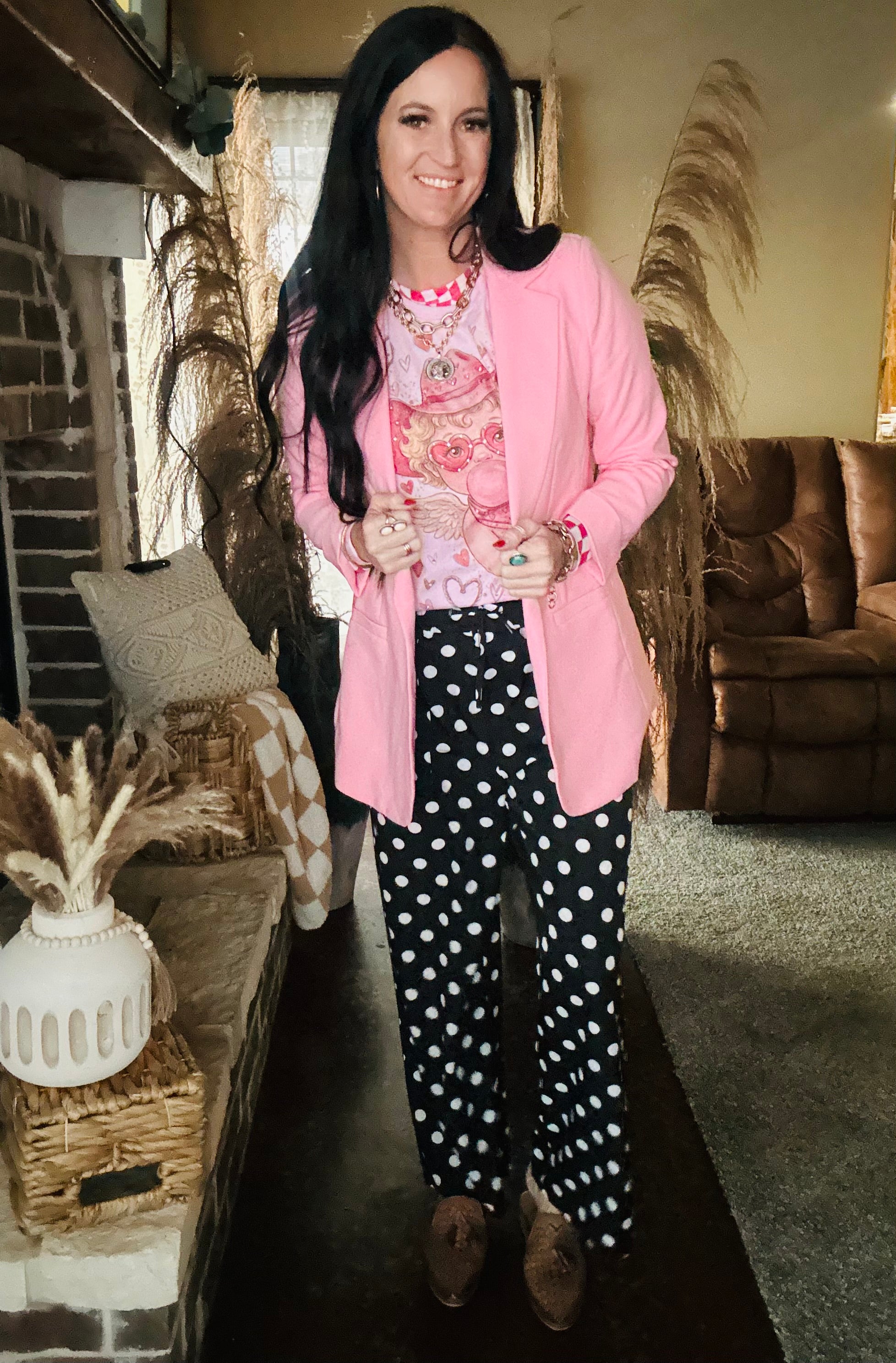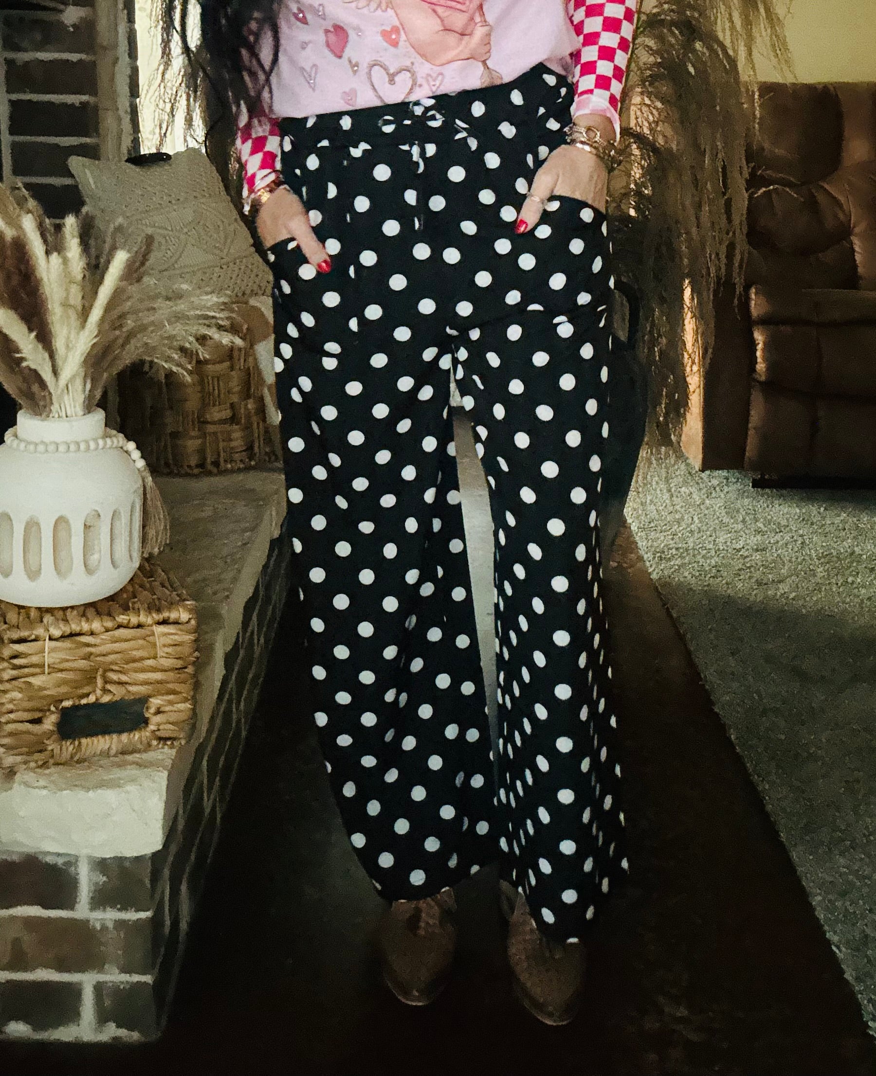 Okay… if you love a statement pant but refuse to sacrifice comfort, these are calling your name. The Lance Polka Dot Pants bring that playful black-and-white polka dot vibe while still feeling easy, flattering, and totally wearable. The wide-leg, cropped silhouette gives you movement and shape without clinging, and the high-waisted fit keeps everything looking polished and pulled together.