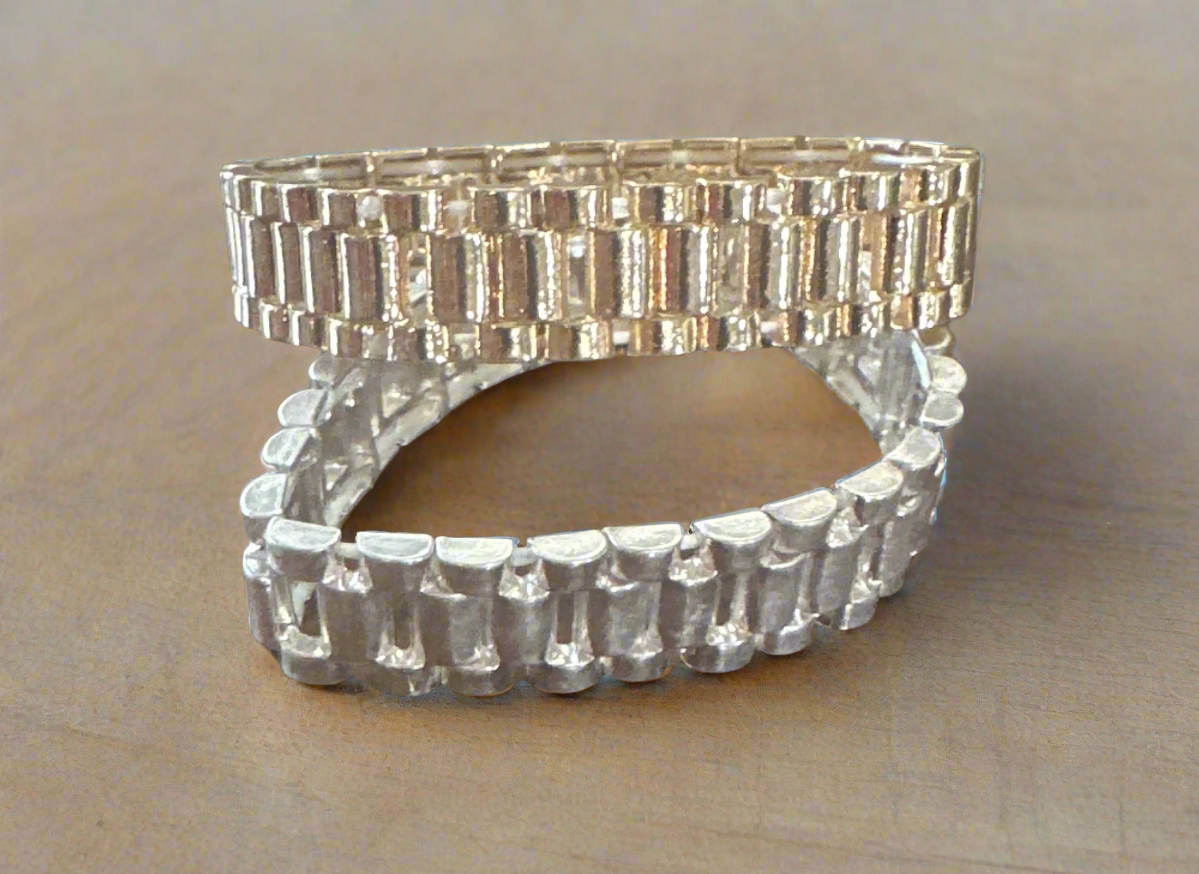 Fashion Watch Strap Stretch Bracelets in Silver or Gold