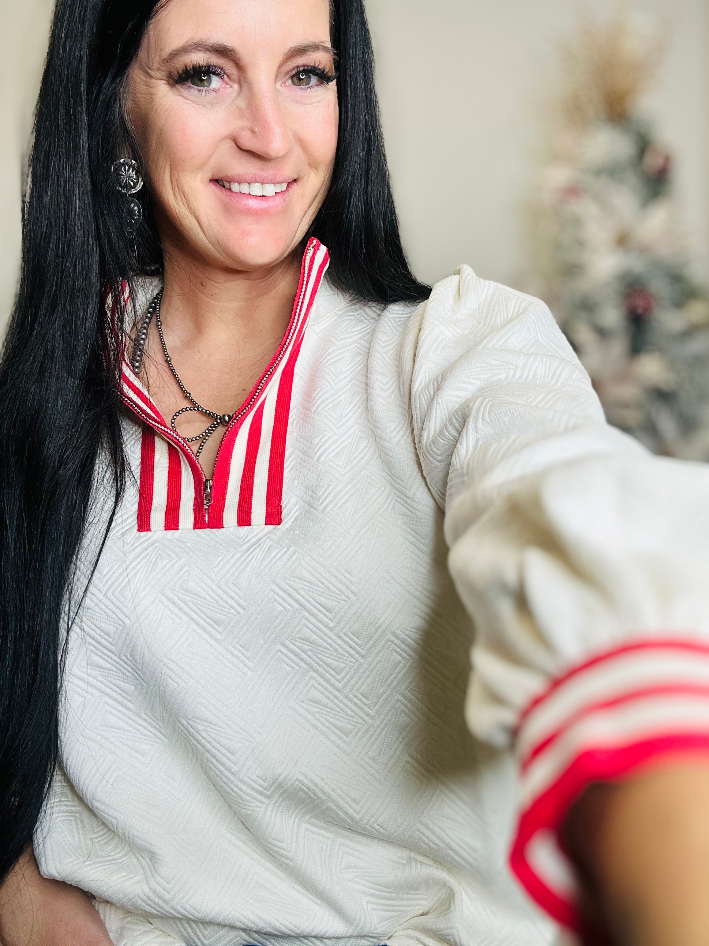 Sophisticated meets sporty with our Jody Mock Neck Knit Top. Designed in a soft textured knit, this long-sleeve blouse features a sleek front zipper, mock neckline, and subtle stripe contrast detailing for a modern touch. The puff sleeves and structured fit add effortless polish, making it perfect for dressing up denim or pairing with tailored pants.