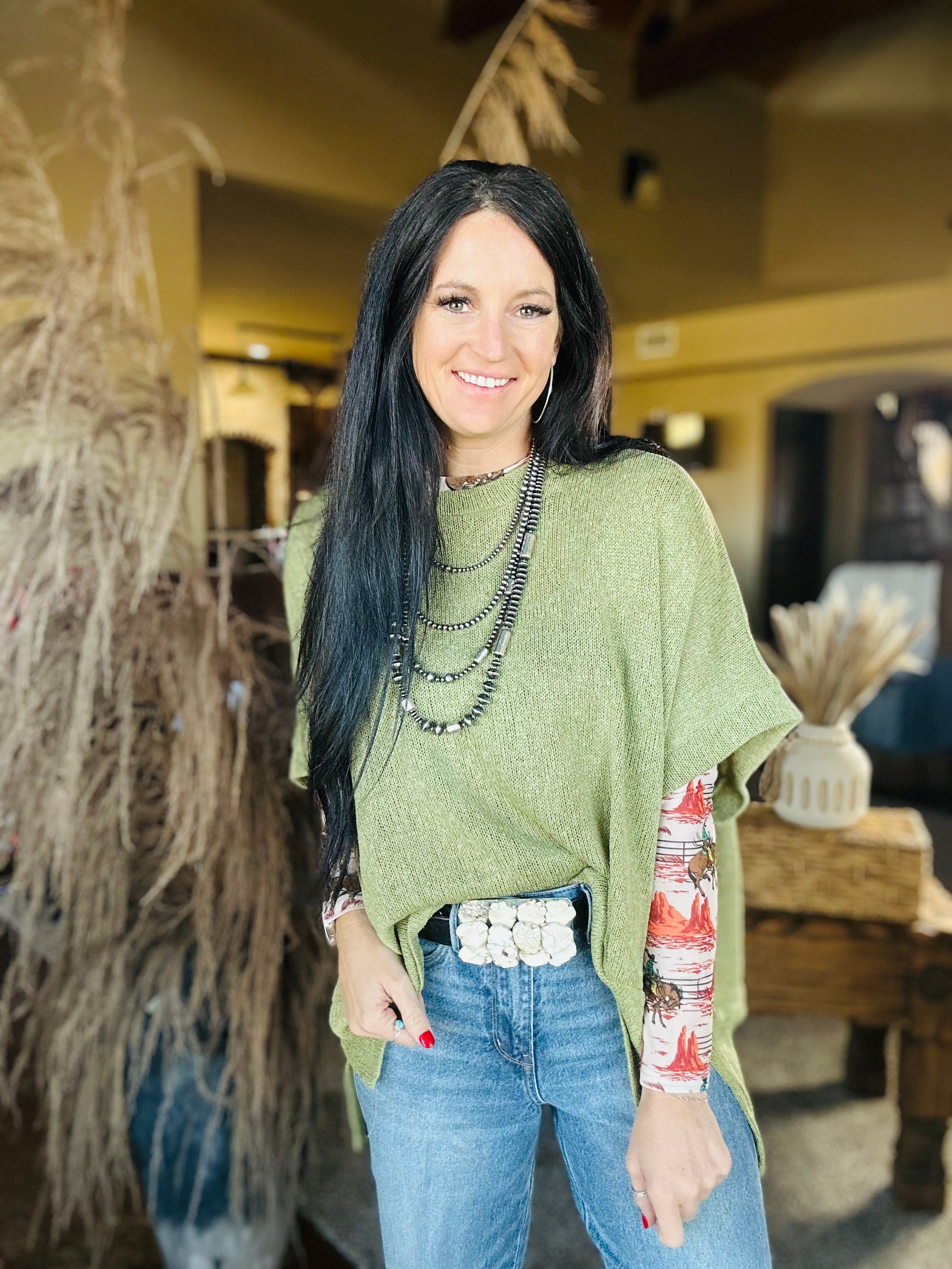 Lightweight Poncho Style Top in Avocado - The Briar