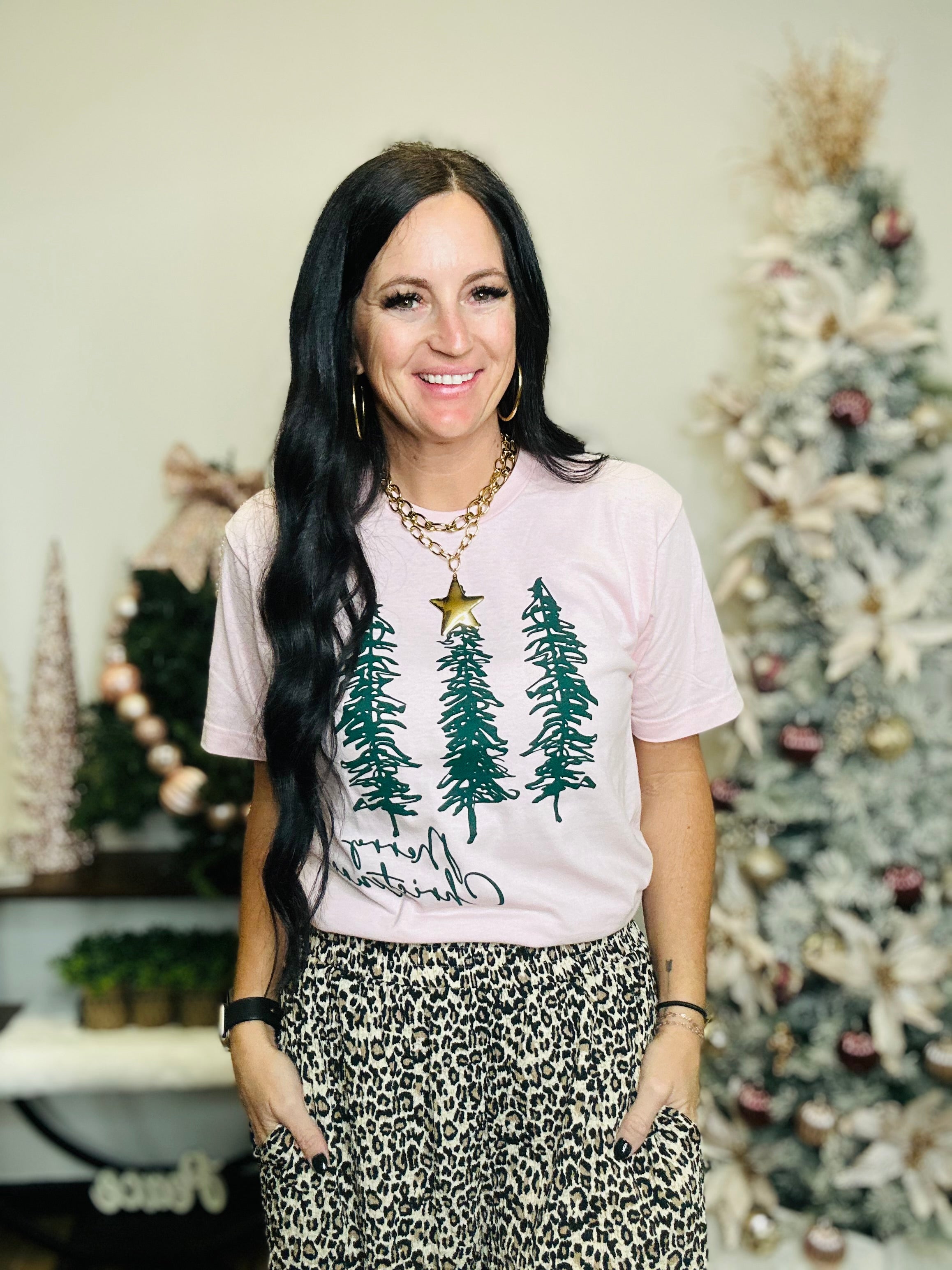 Keep it cute and cozy this holiday season with our Christmas Trees Pink Graphic Tee! 🌲💗