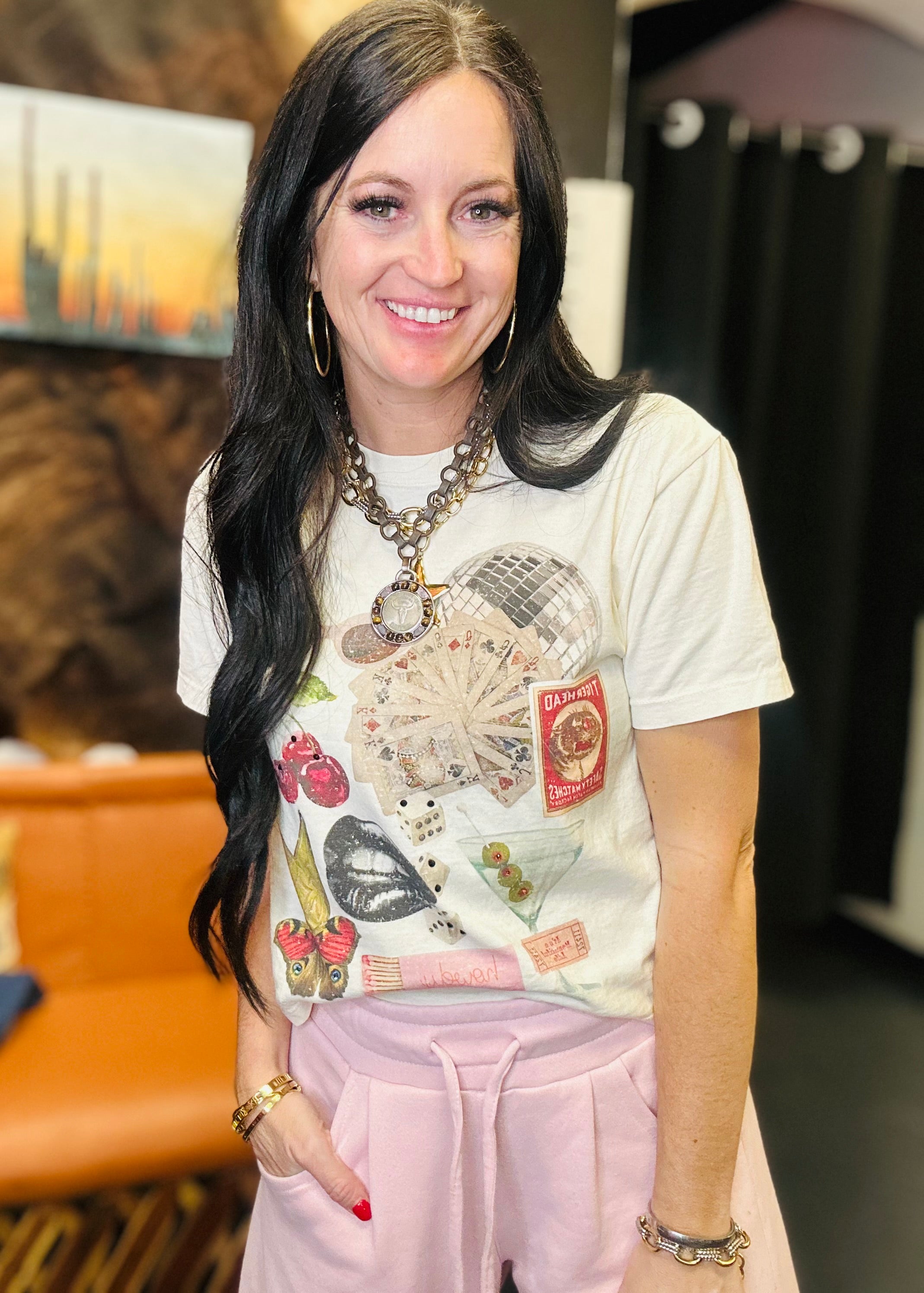 This is the kind of tee that does the talking for you—easy to throw on, but never boring. Dress it up with layered jewelry and boots or keep it casual with sneakers and denim. Either way, it’s a vibe.