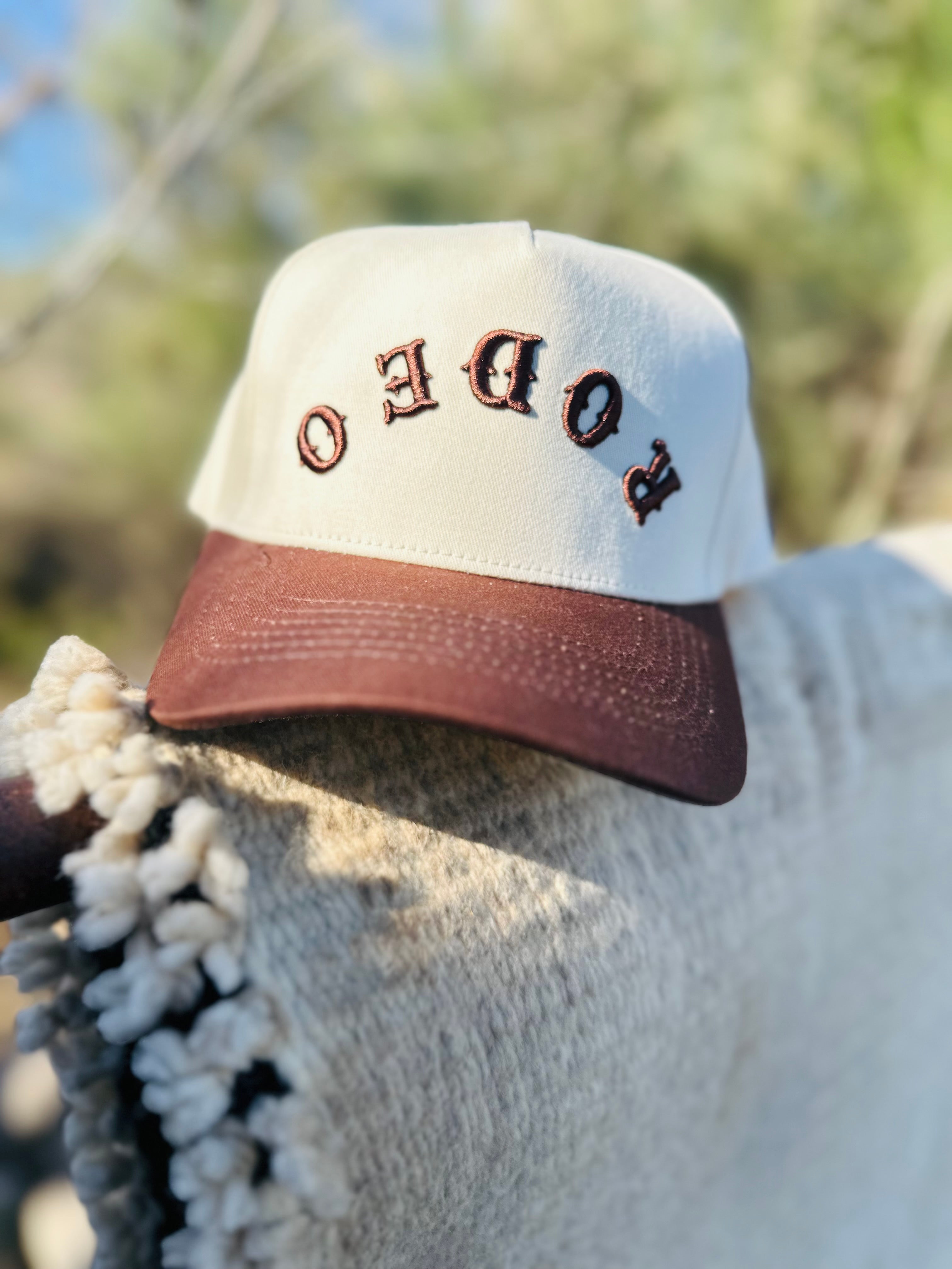 Women’s Embroidered Trucker Hat with Upside Down Rodeo Graphic