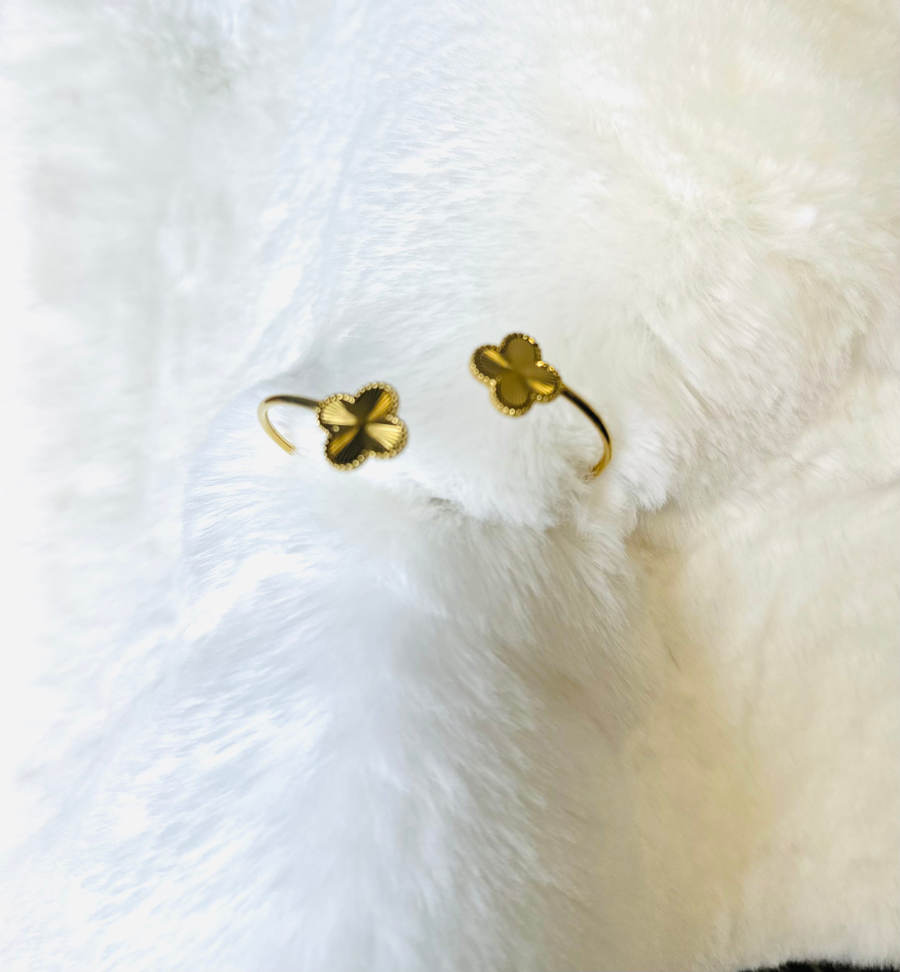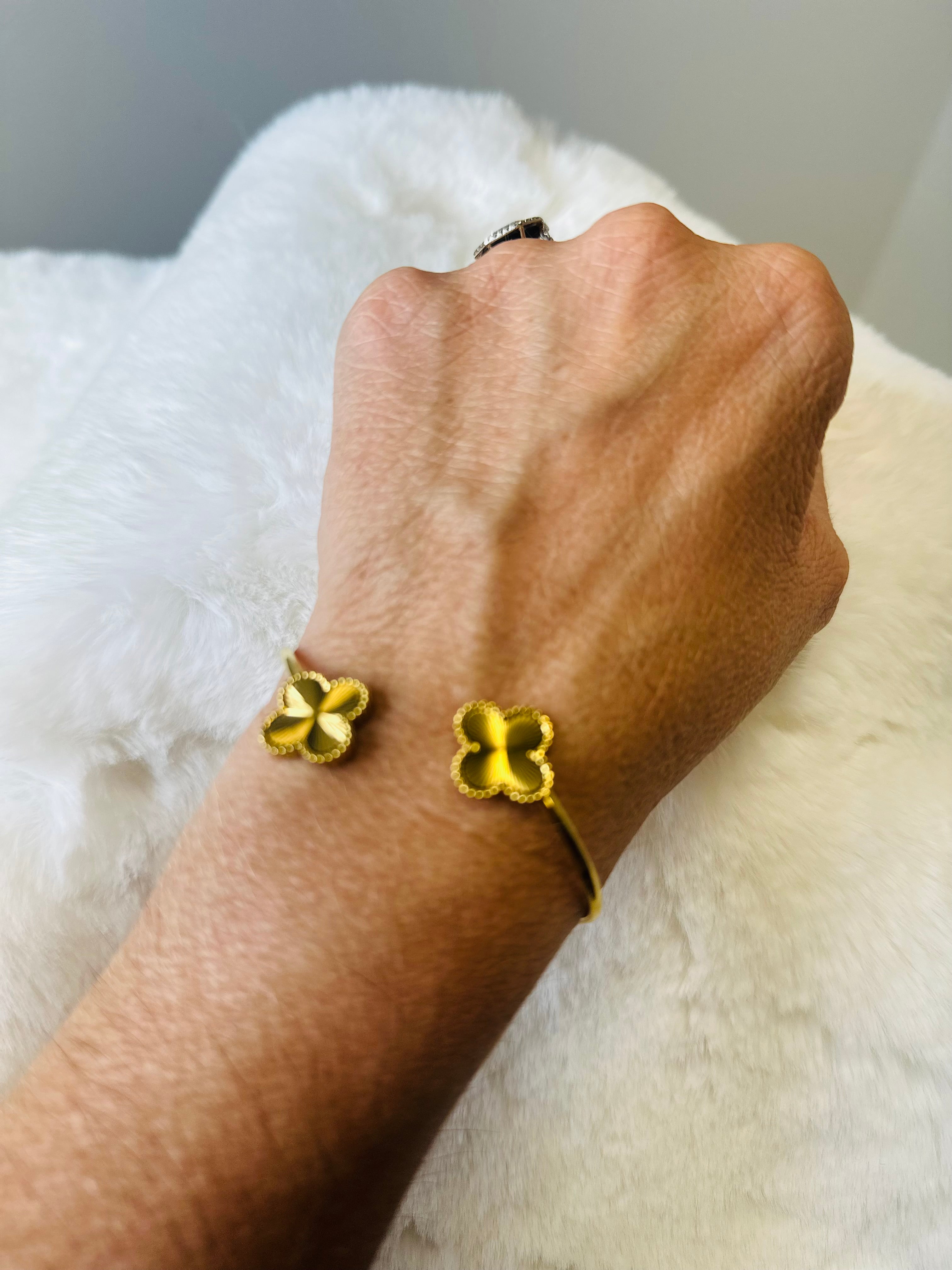 Flexible Stainless-Steel Gold-Plated Water-Resistant Clover Cuff Bracelet