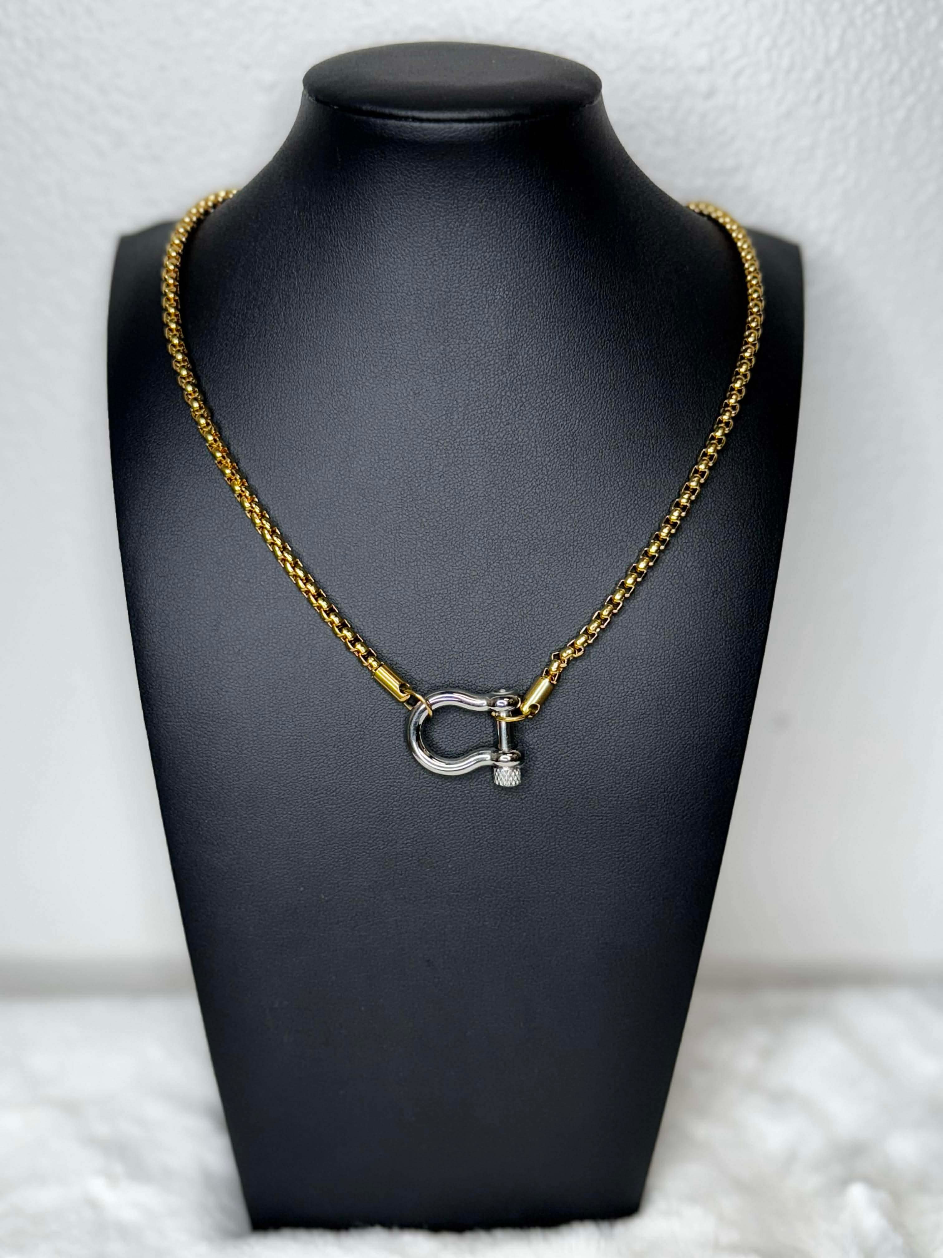 Stirrup Locket Gold-Plated Necklace is that effortless little statement you can wear with everything — from graphic tees and denim to blazers and Sunday dresses. The stirrup shape gives a subtle nod to western life, while the two-tone white and yellow gold finish keeps it classy and timeless. With an 18-inch chain and water-resistant stainless-steel base, this is a piece you can keep on all day and actually live in — school runs, work, rodeos, date night and everything in between. Layer it with your favorite chains or let it shine solo for a simple, polished look.