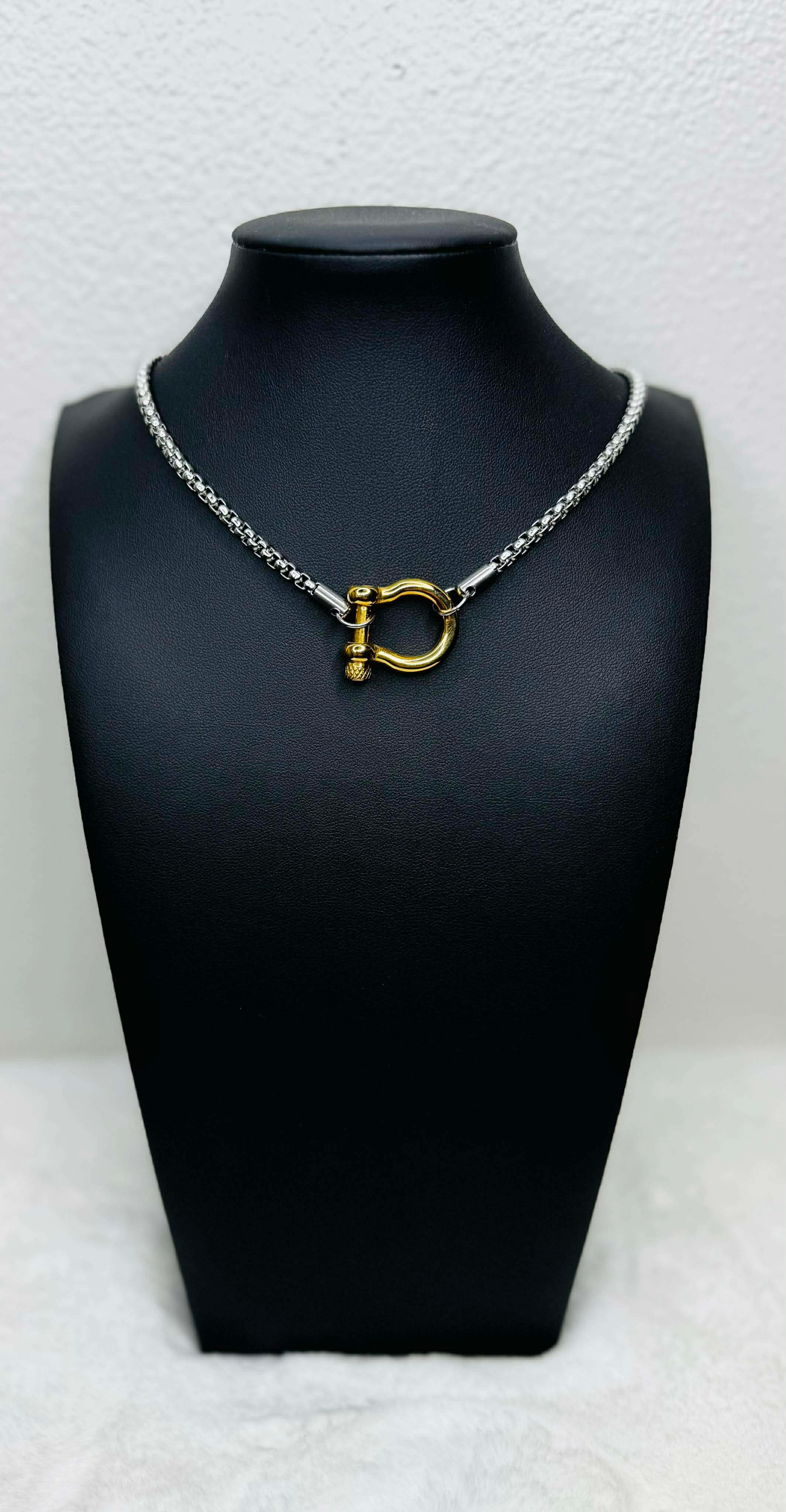 Women's Stainless-Steel 18K Gold-Plated Water-Resistant Stirrup Locket Necklace in White and Yellow Gold