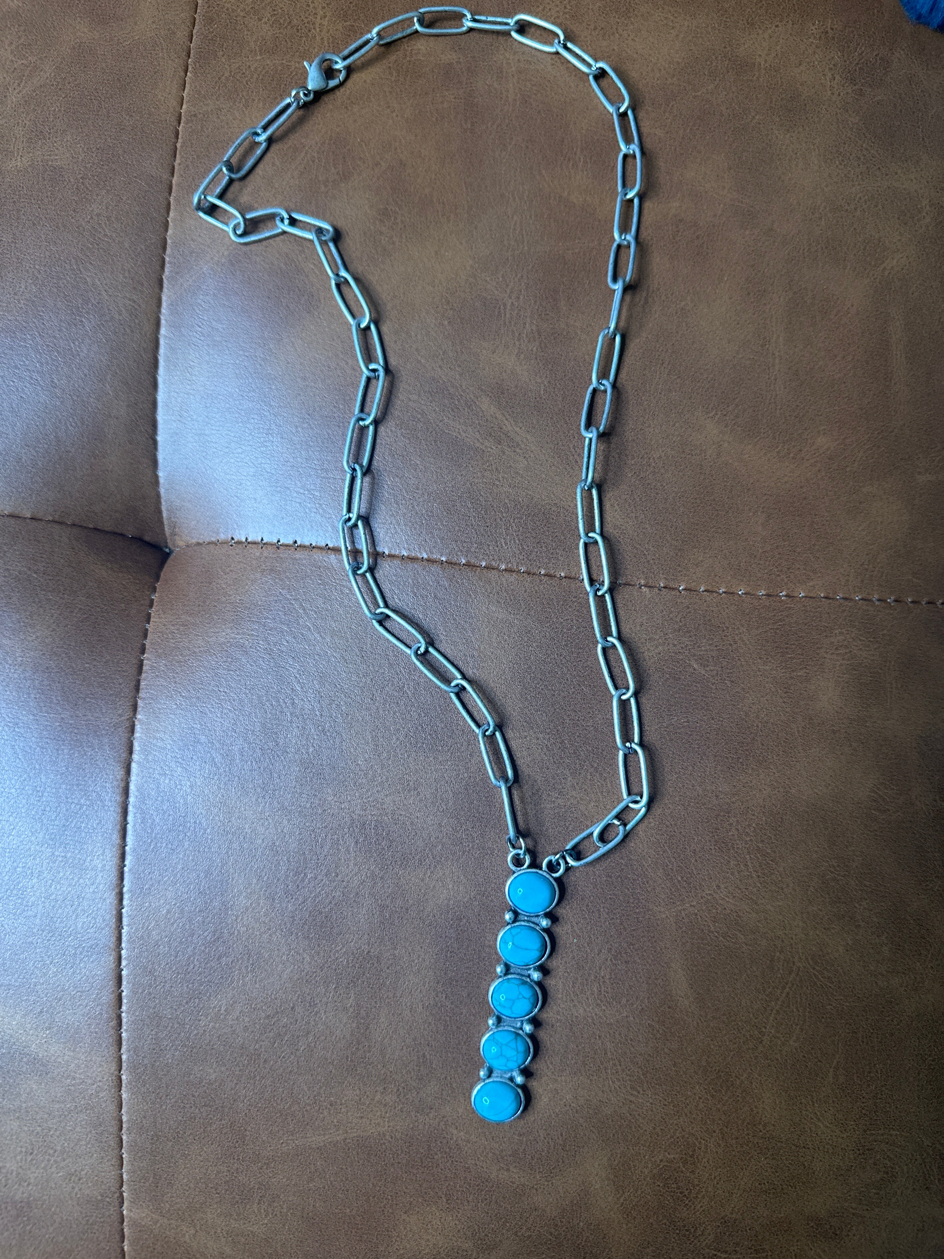 Western Silver Tone Paperclip Chain with 5 Stone Turquoise Pendant Fashion Necklace
