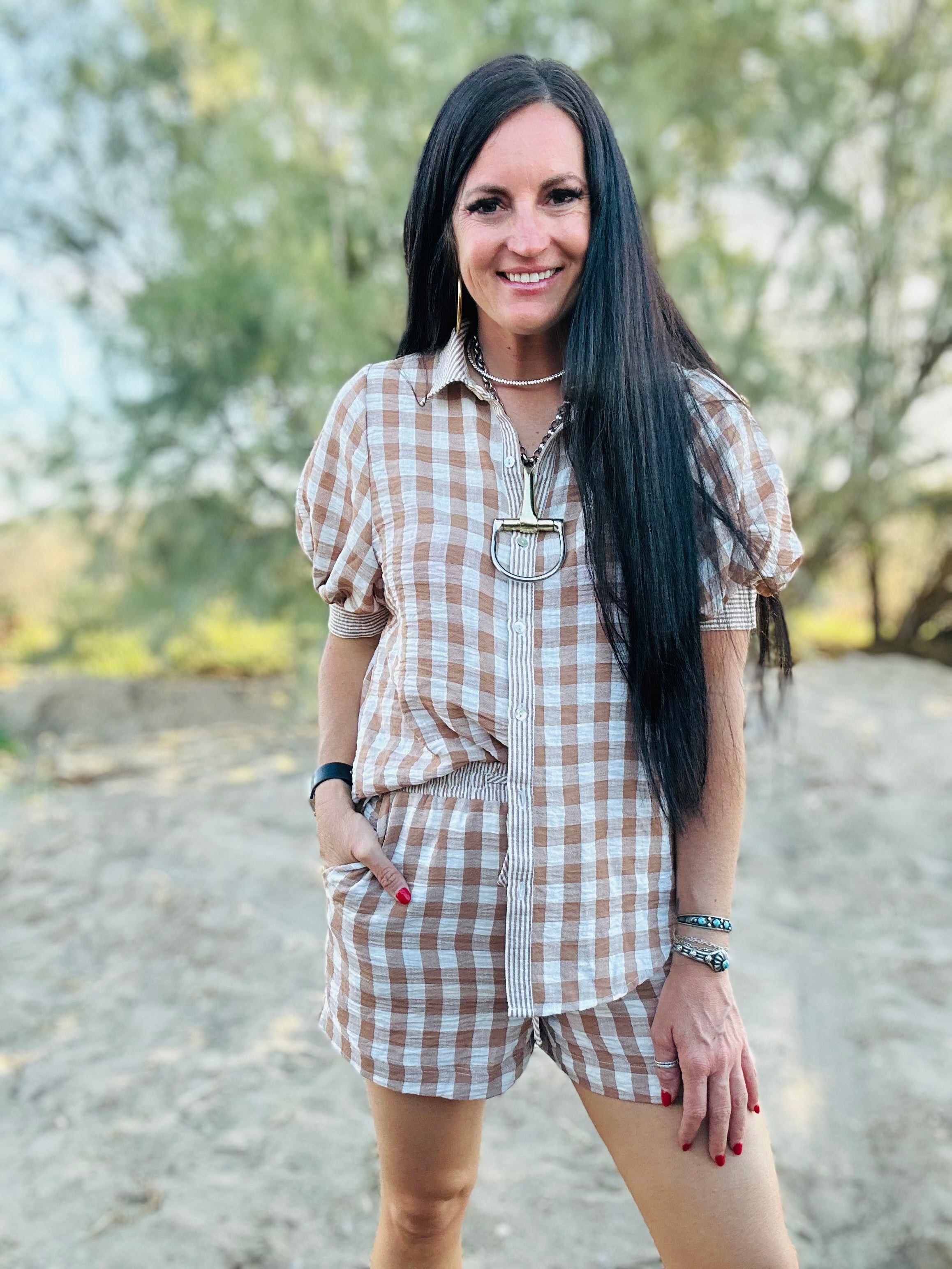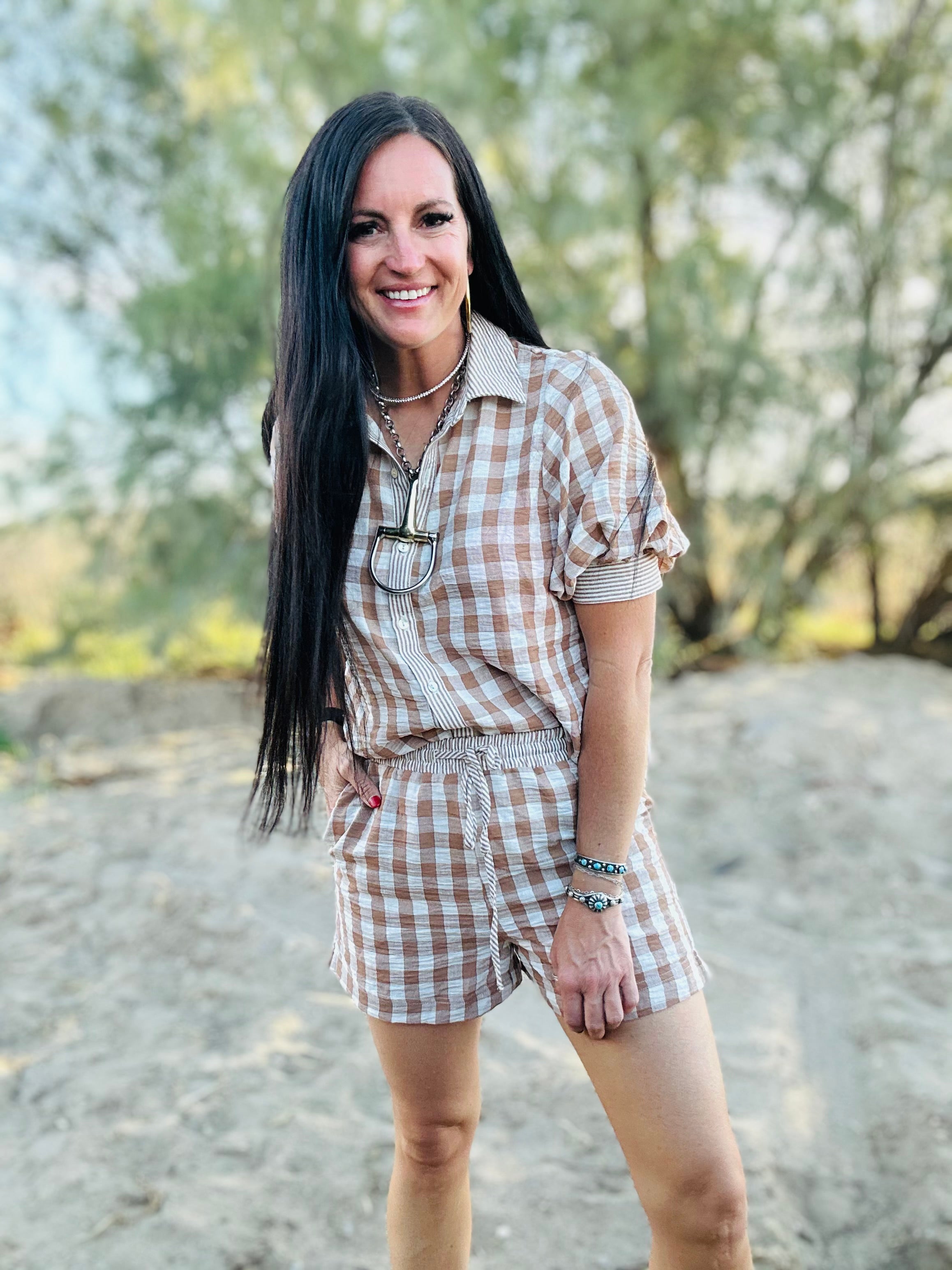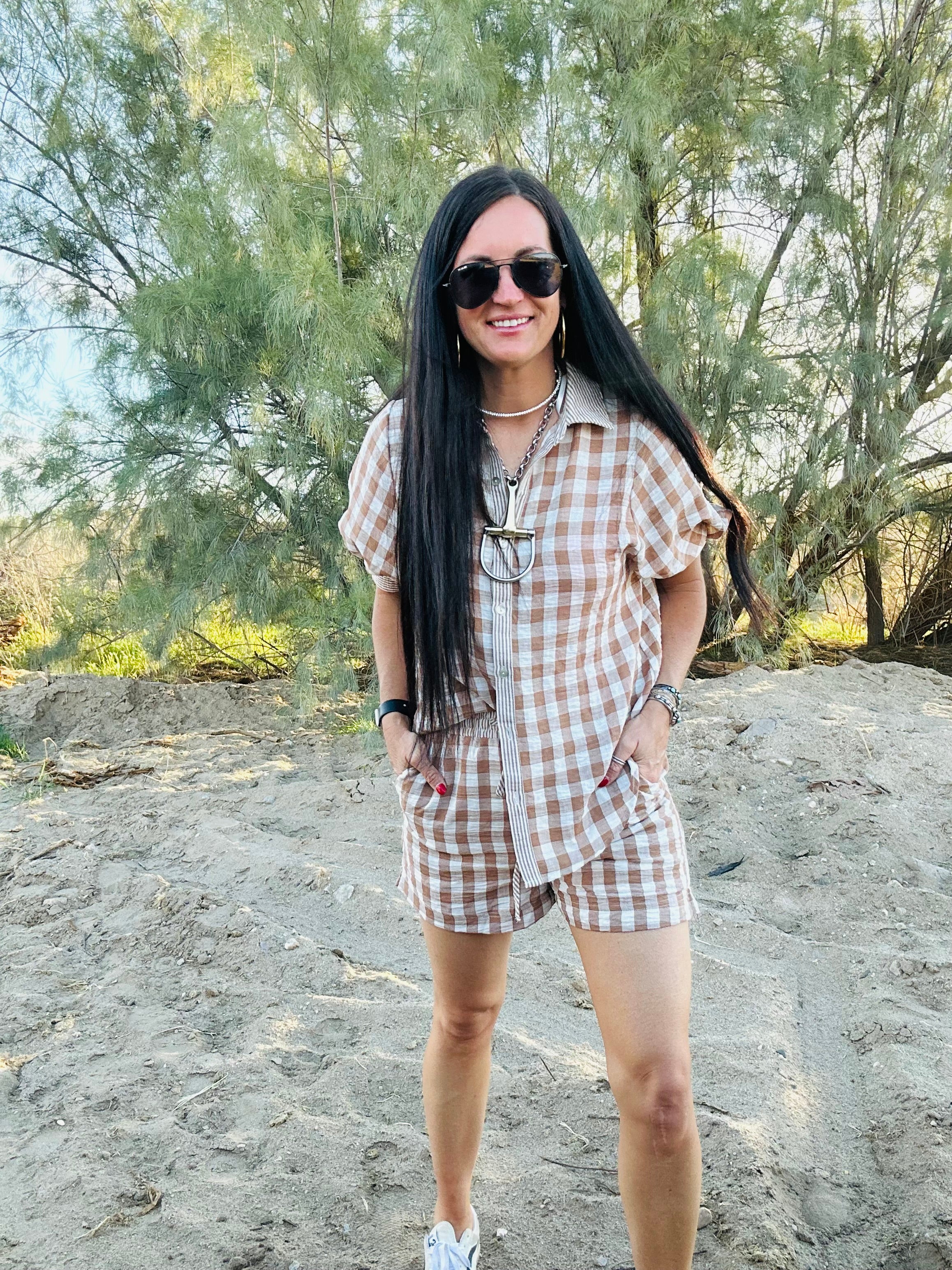 The Cara Checkered Top and Short Set gives you that effortless, put-together look without having to overthink a thing. The classic checkered print keeps it fun and on-trend, while the relaxed button-down top and elastic waist shorts make it comfortable enough for real life.