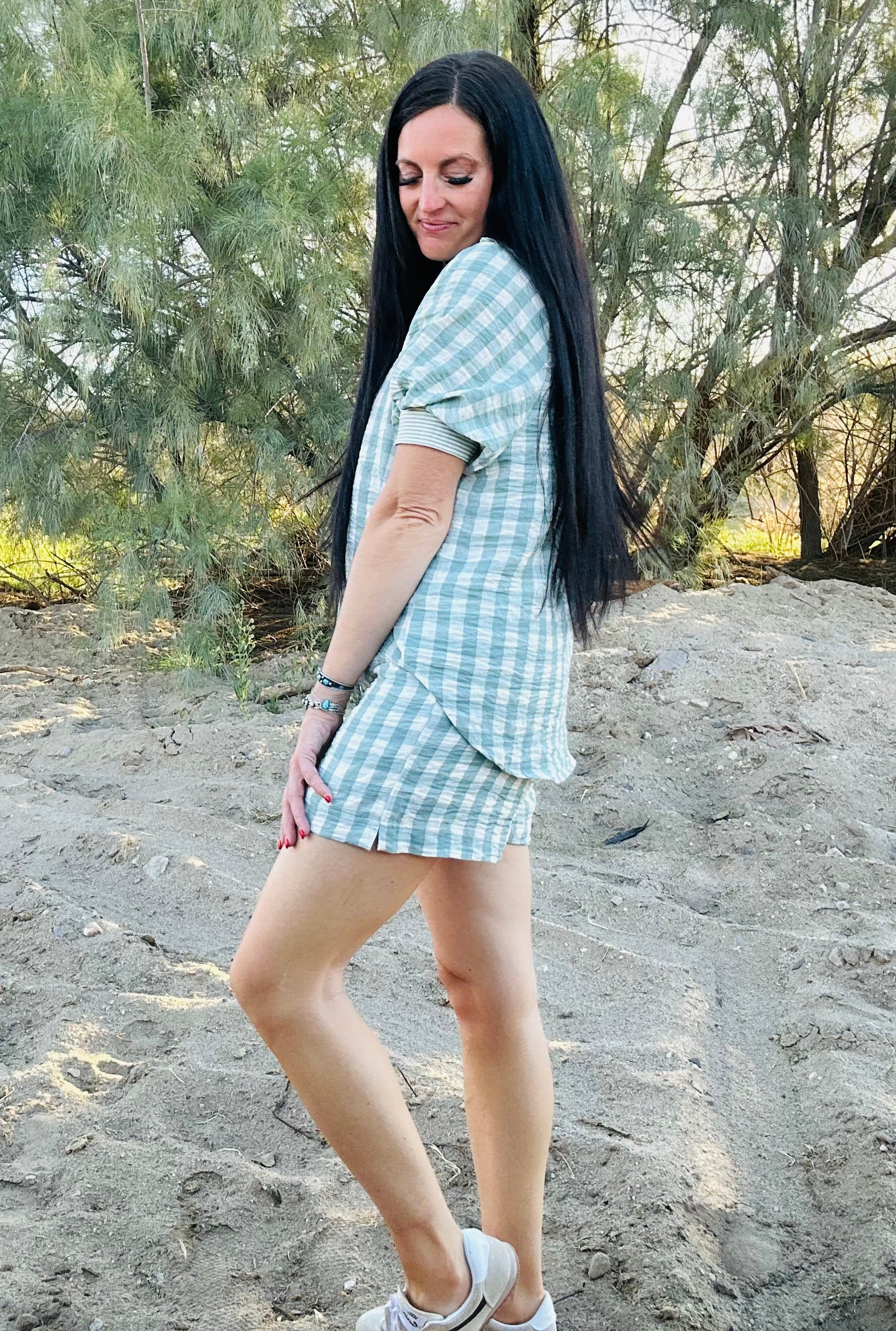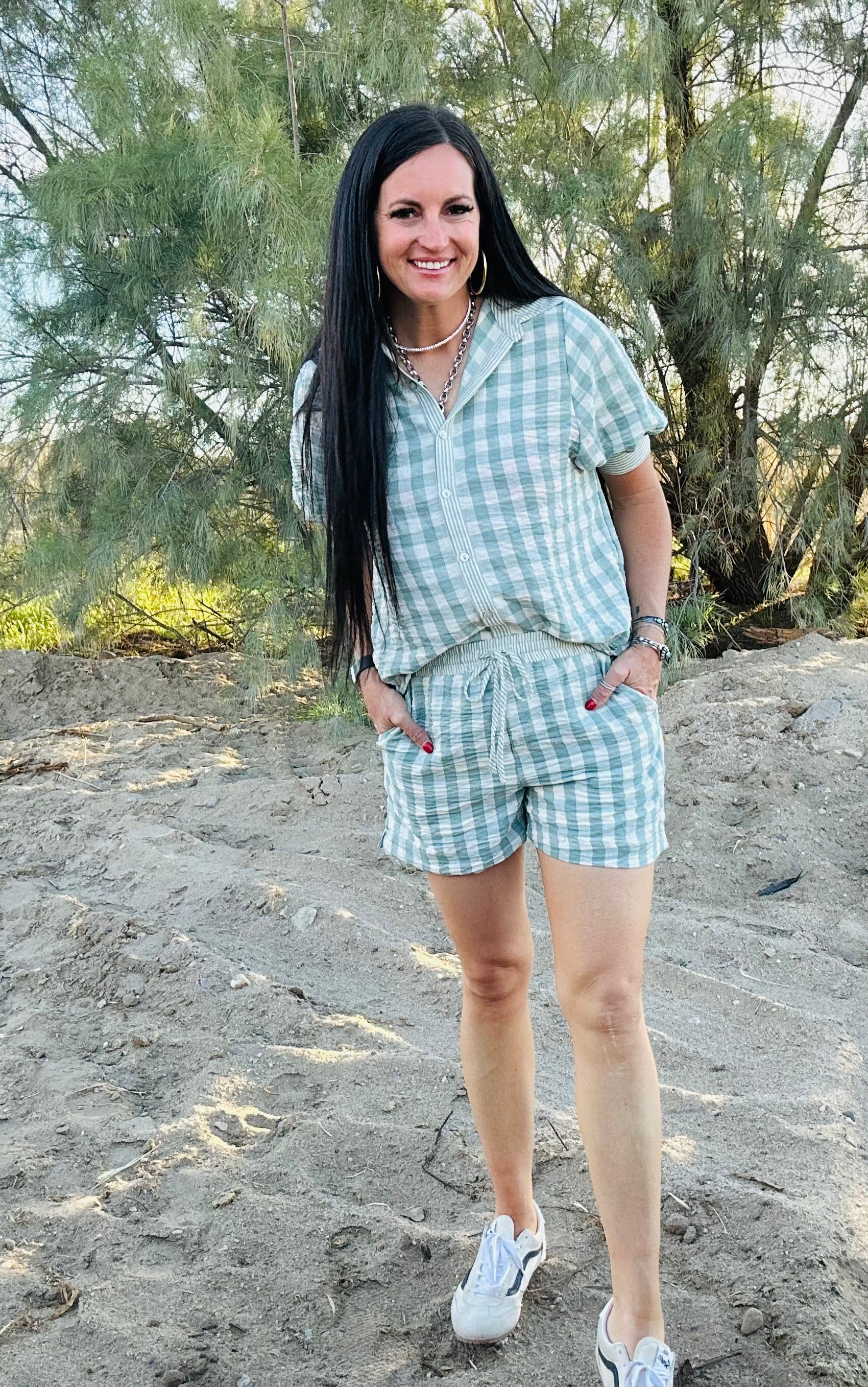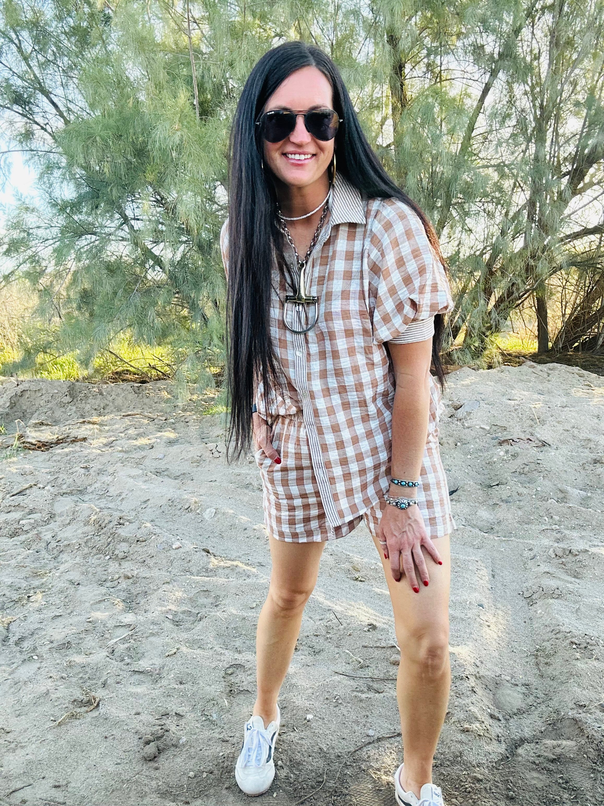 The Cara Checkered Top and Short Set gives you that effortless, put-together look without having to overthink a thing. The classic checkered print keeps it fun and on-trend, while the relaxed button-down top and elastic waist shorts make it comfortable enough for real life.