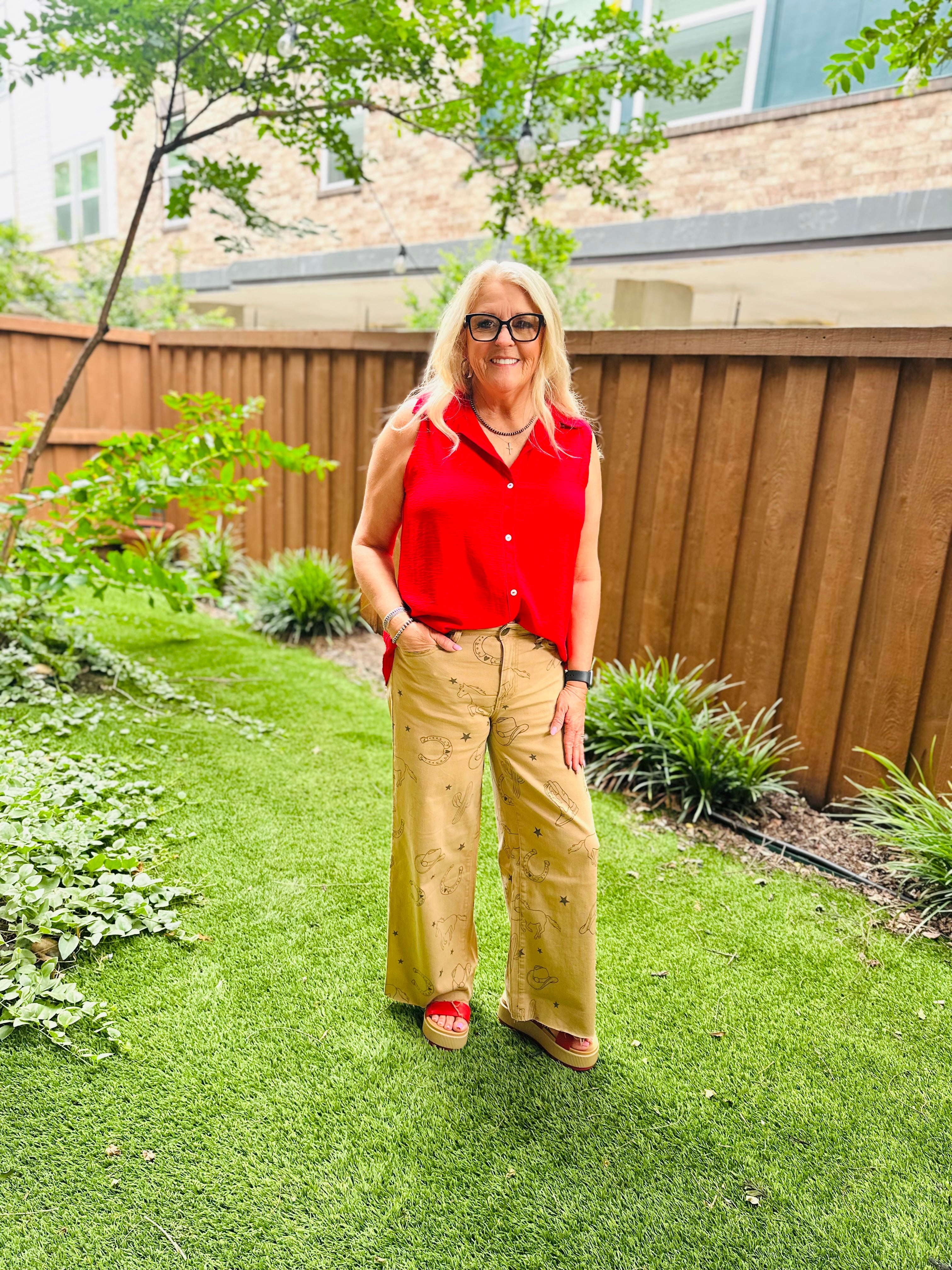 Easel Western Print Twill Stretch Pants