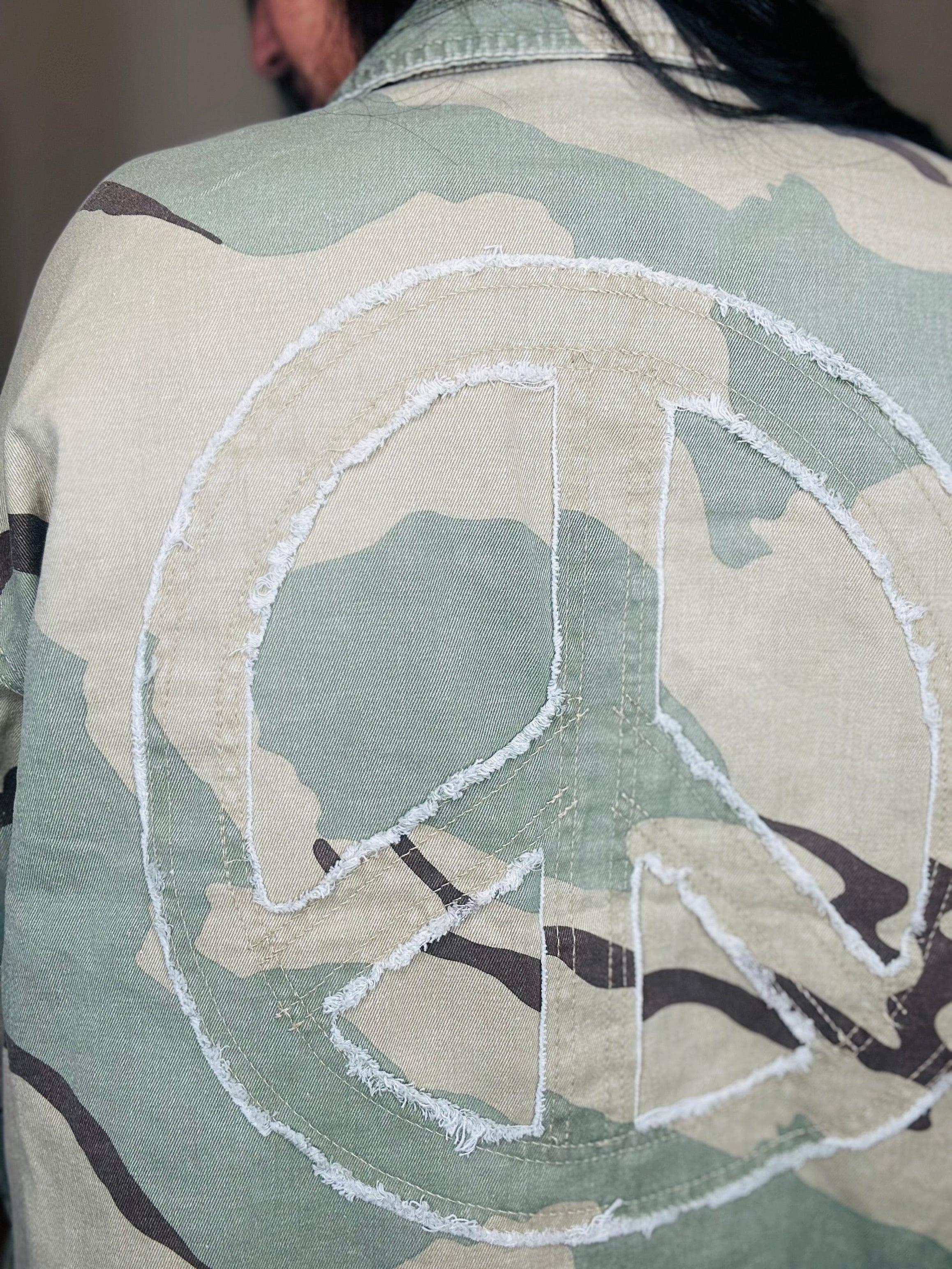 Relaxed fit camouflage jacket with peace sign back patch