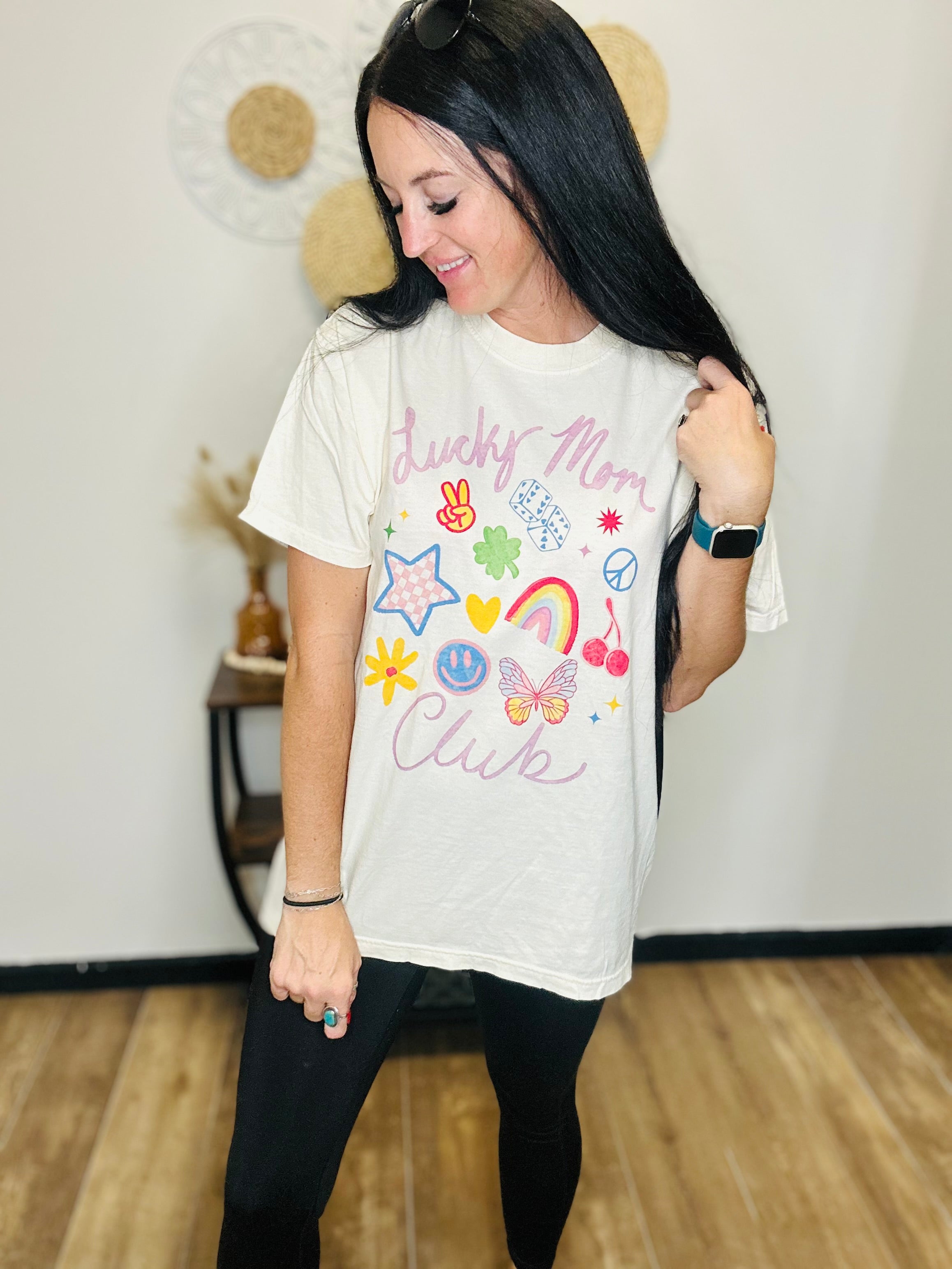 Step into effortless style and celebrate motherhood with our Lucky Mom Club Tee 🌈. Printed on a soft cream Comfort Colors tee, this short sleeve features bright, fun retro-inspired graphics that give it a playful, vintage vibe. Perfect for moms who want to show off their lucky status while keeping comfy and casual.