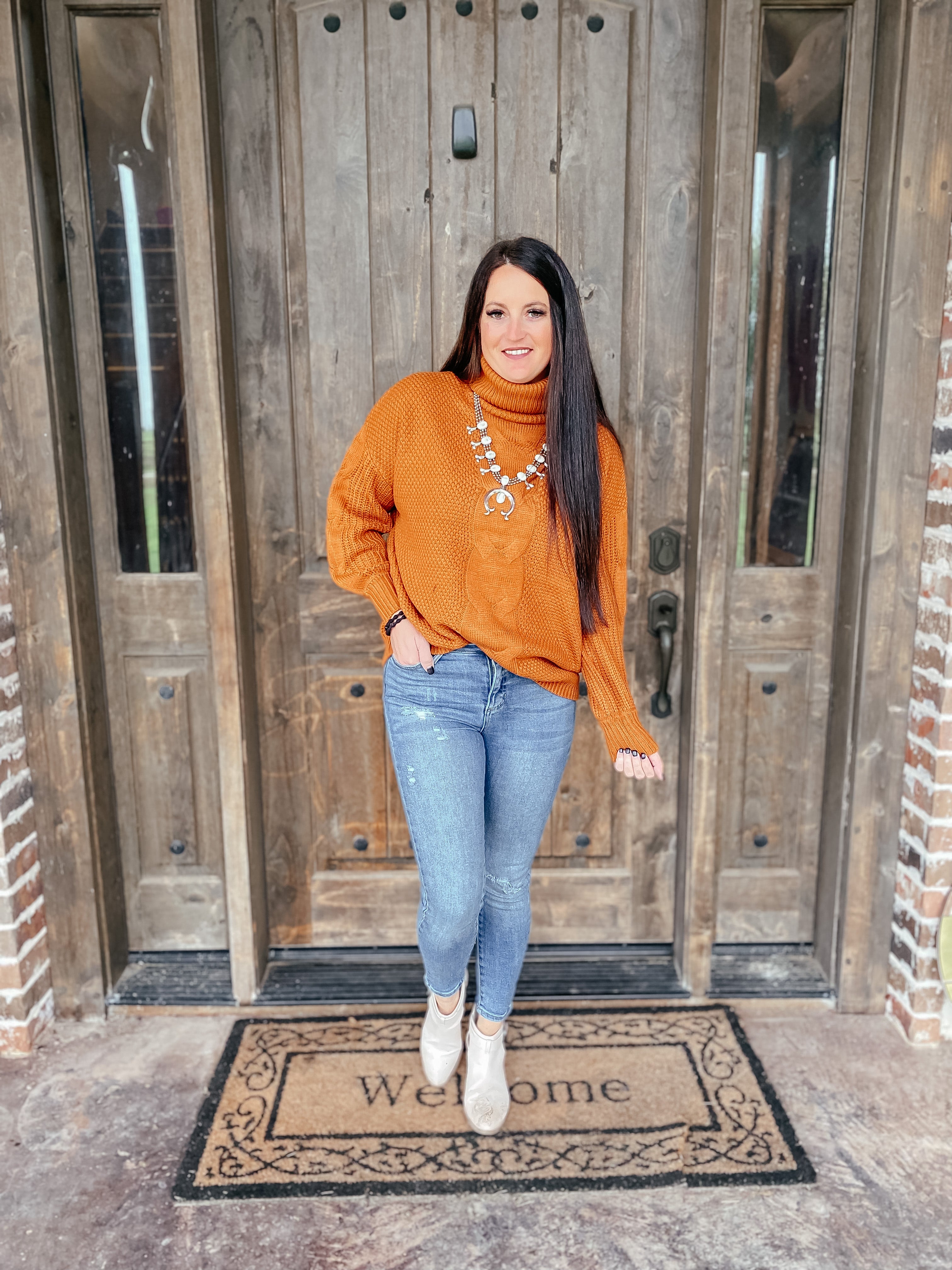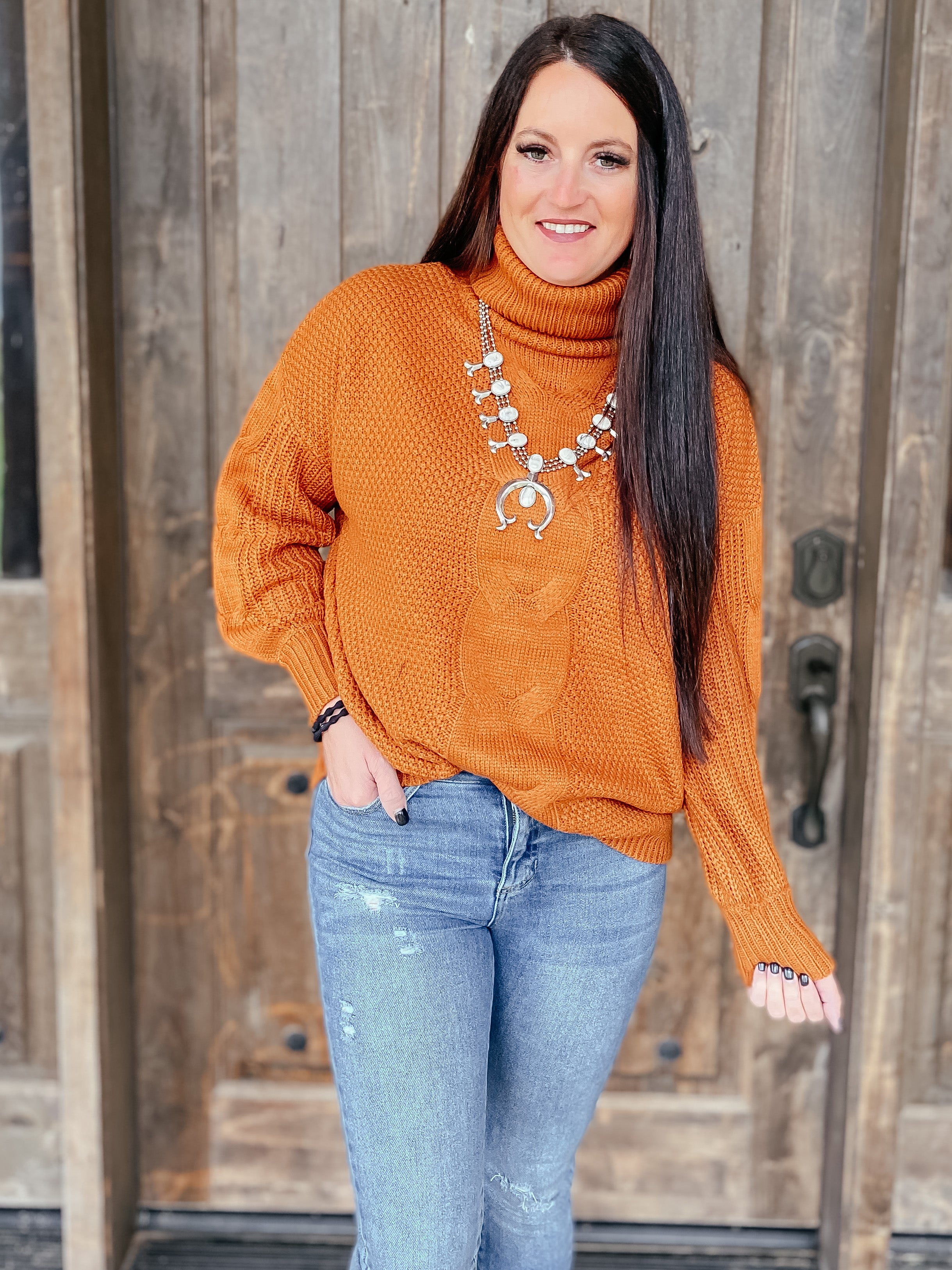 Adventure awaits in this women's pullover sweater! We love the charming cable-knit design with the turtleneck for an effortlessly stylish look, whether you're at the office or enjoying a girl's night out! This cozy sweater pairs well with jeans, skirts or dress pants so you can from a casual and relaxed look to something dressier in a snap. The oversized casual fit and long sleeves are sure to keep you comfy and cozy all day long.