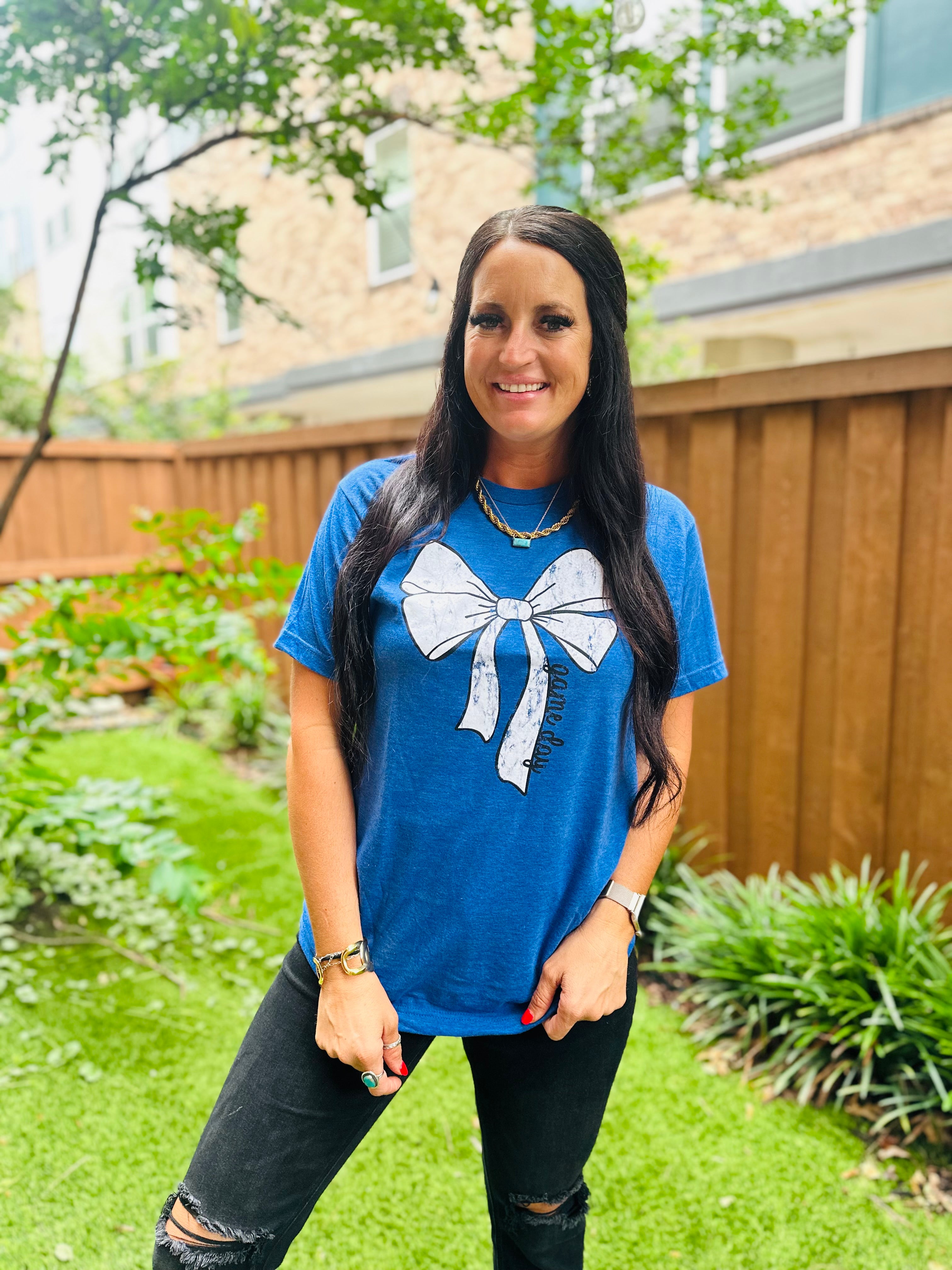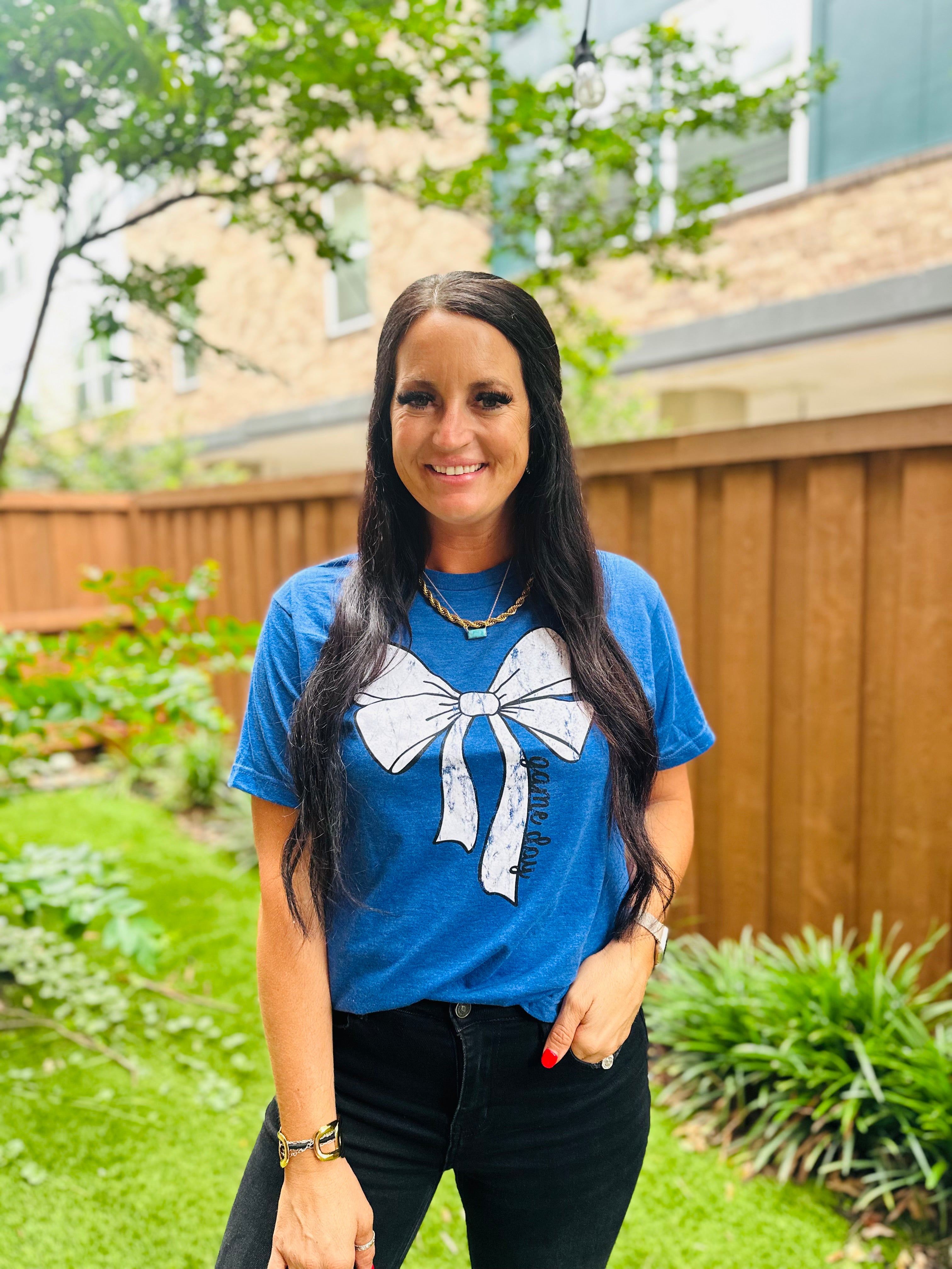 Game Day Blue Bow Graphic Tee