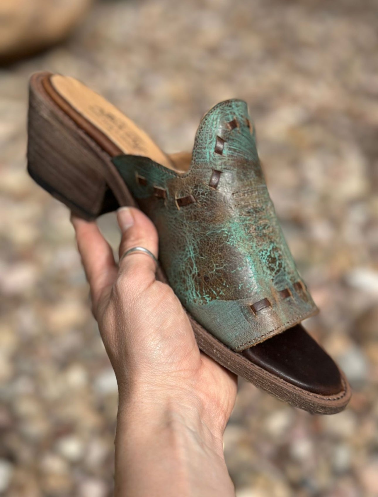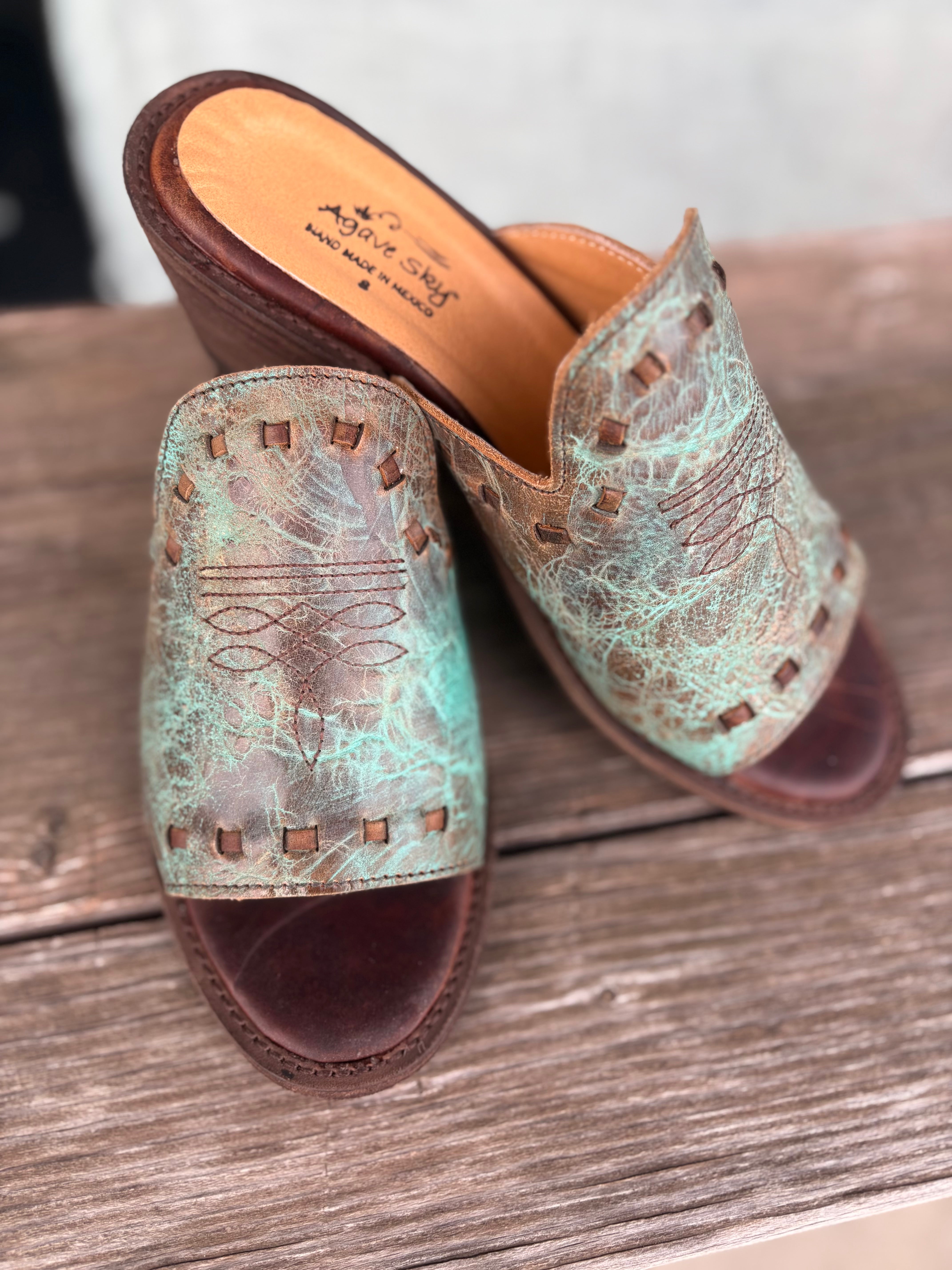 Women's Agave Sky Oasis Turquoise Genuine Leather Open Toe Slide with Heel