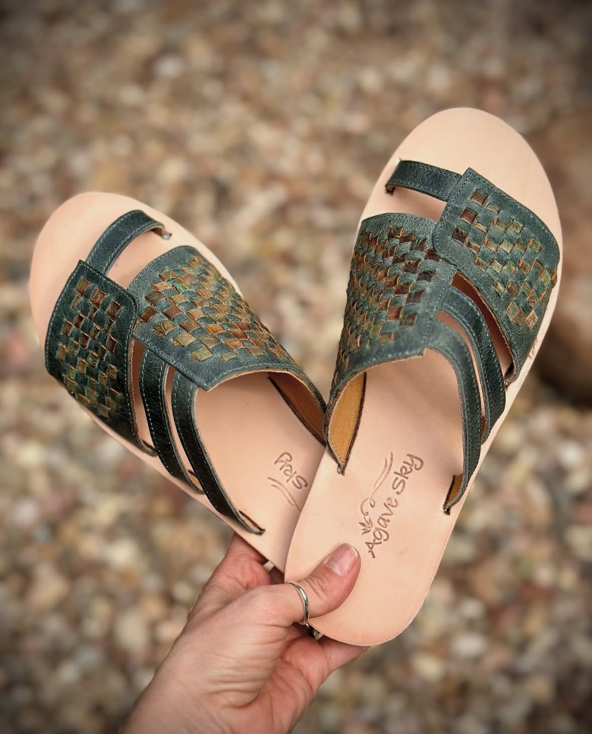 Women's Agave Sky Blue Woven Genuine Leather Sandal Slides