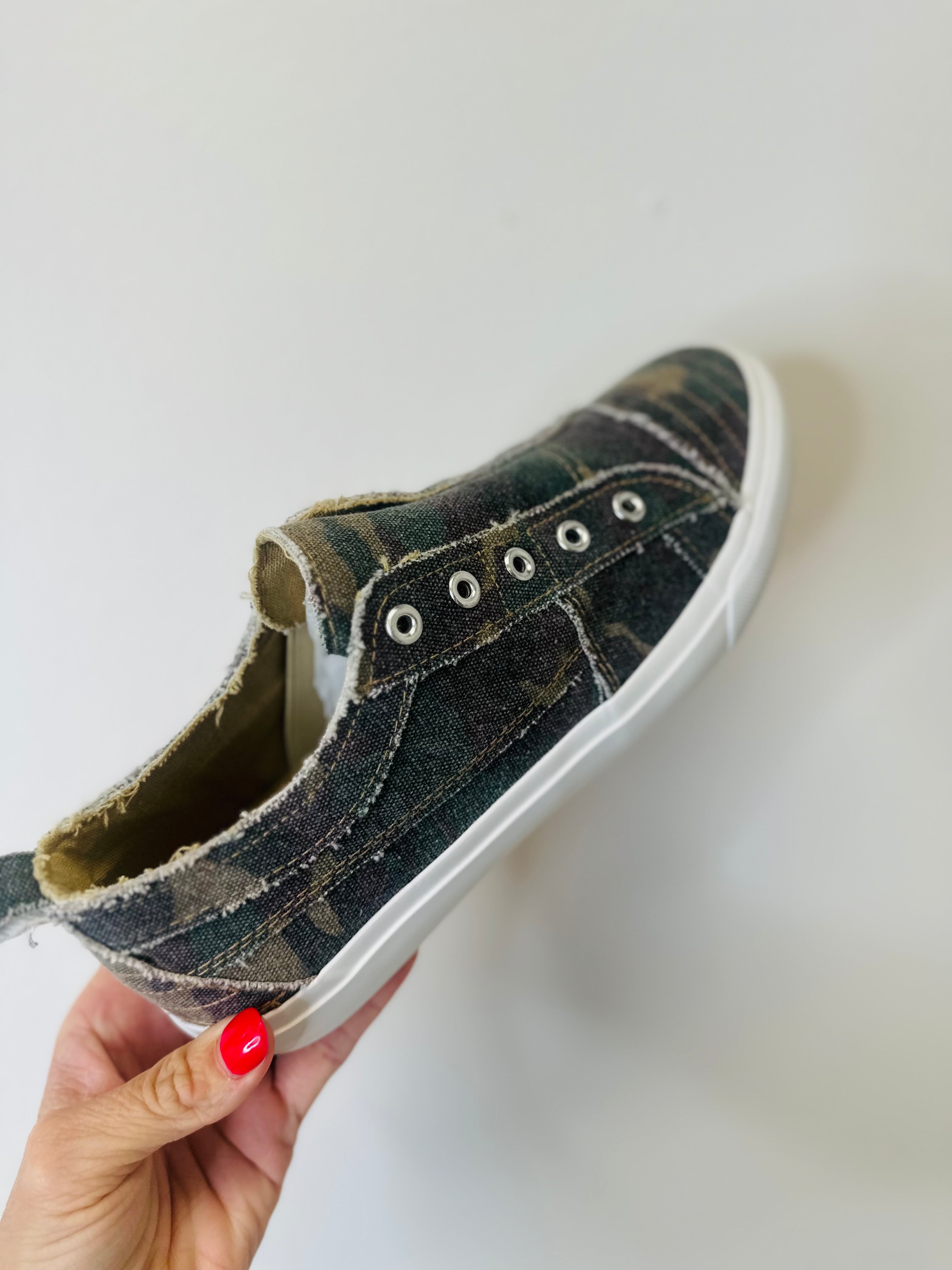 Step into style with Corky's Babalu Camo Slip-On Sneakers. With a canvas upper and hidden elastic at the instep, these shoes are not only fashionable but also comfortable. The 1" rubber outsole provides traction while the cushion insole adds extra support. Perfect for slipping on and going on your next adventure!