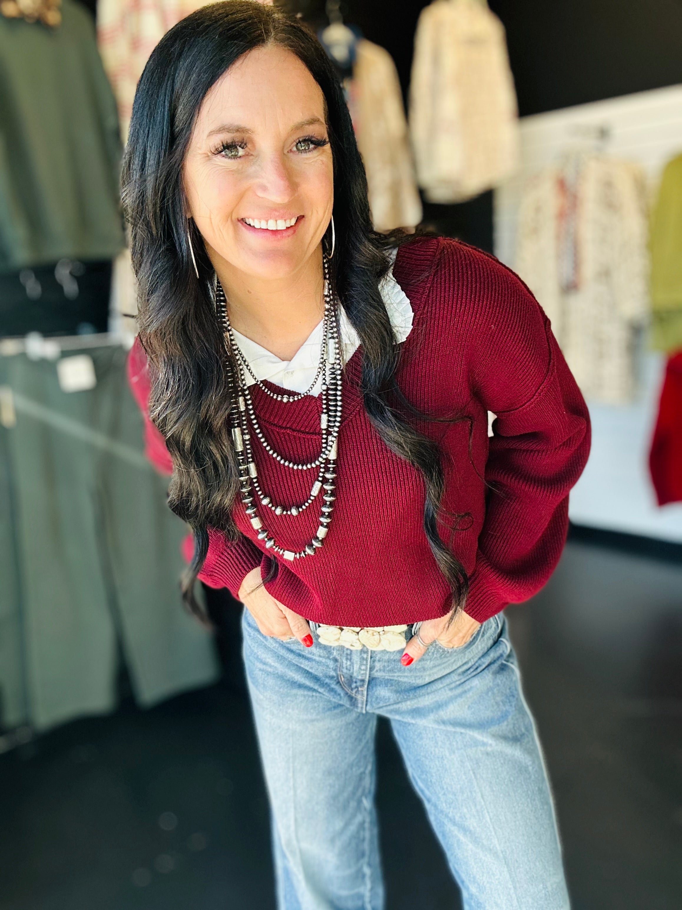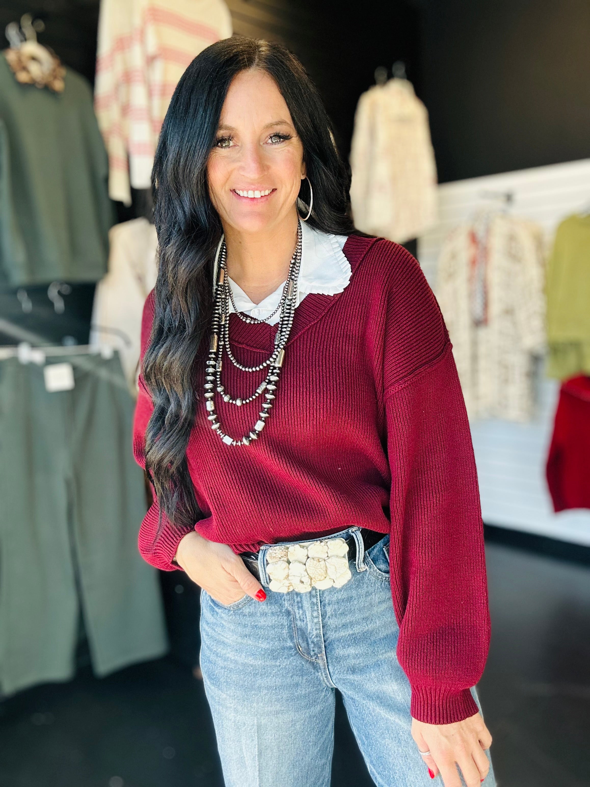 Polly Exposed Seam Oxblood Knit Sweater