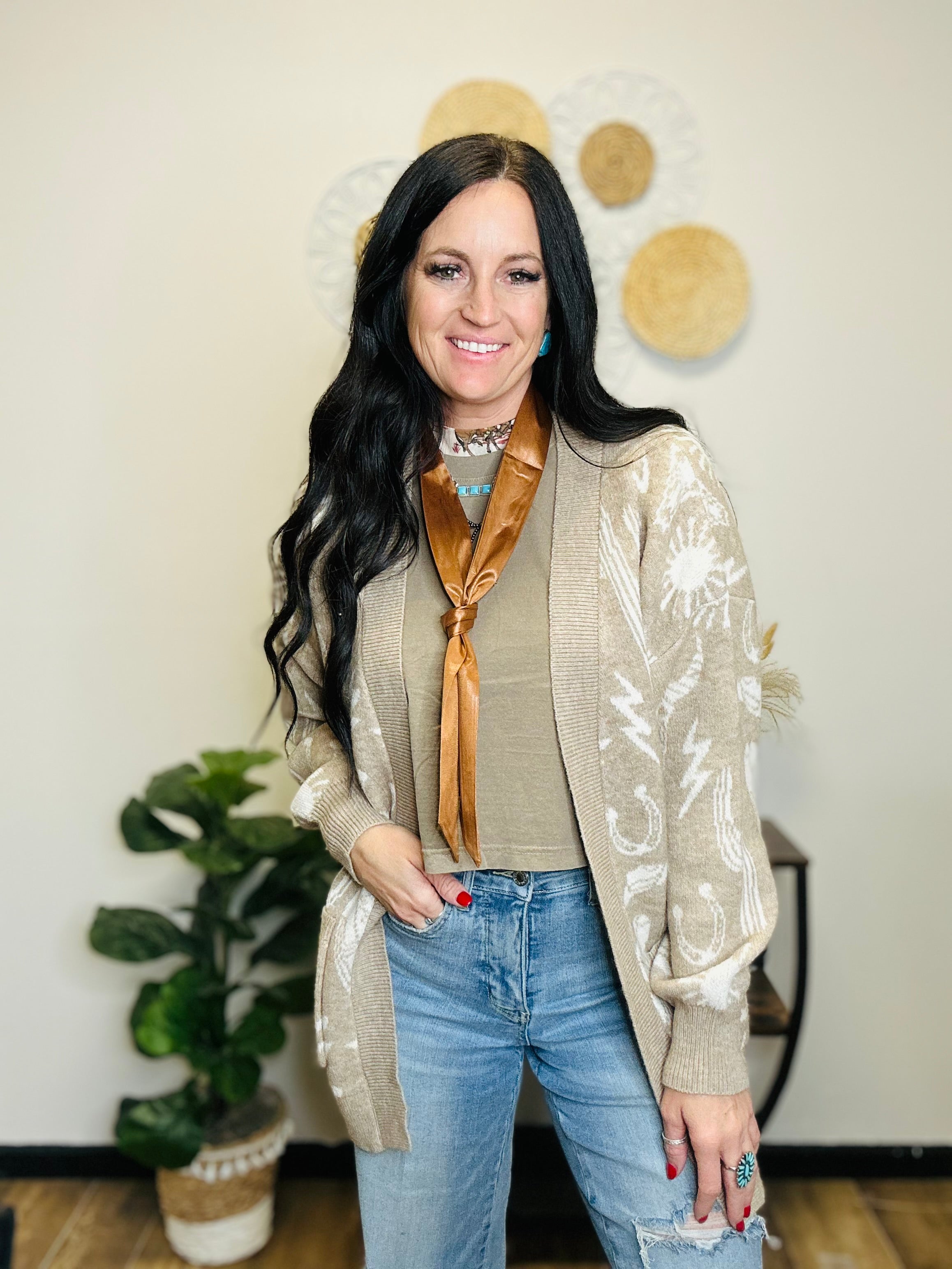 This solid saddle twilly is that little extra that makes an outfit look instantly styled—without trying too hard. Tie it on a collared shirt for a preppy-meets-western vibe, knot it around your ponytail for a cute on-the-go look, or wrap it on your handbag handle for that rich, saddle-toned pop. Truly one of those “wear it a million ways” accessories.