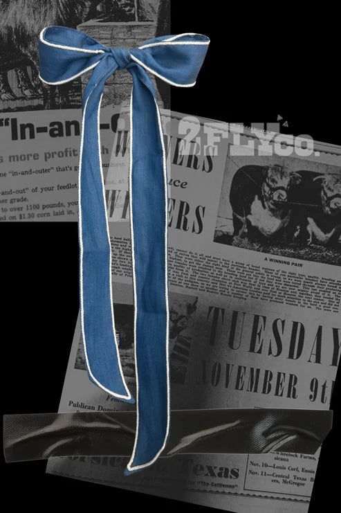 Okayyy this one is a whole vibe. We took the classic twilly scarf you already love and leveled her UP—denim fabric with that rope-like white trim for the perfect western finish. Tie it on your handbag handles, wear it with a button-down, or throw it in your hair and call it a “done and cute” kind of day. We’re seriously obsessed.