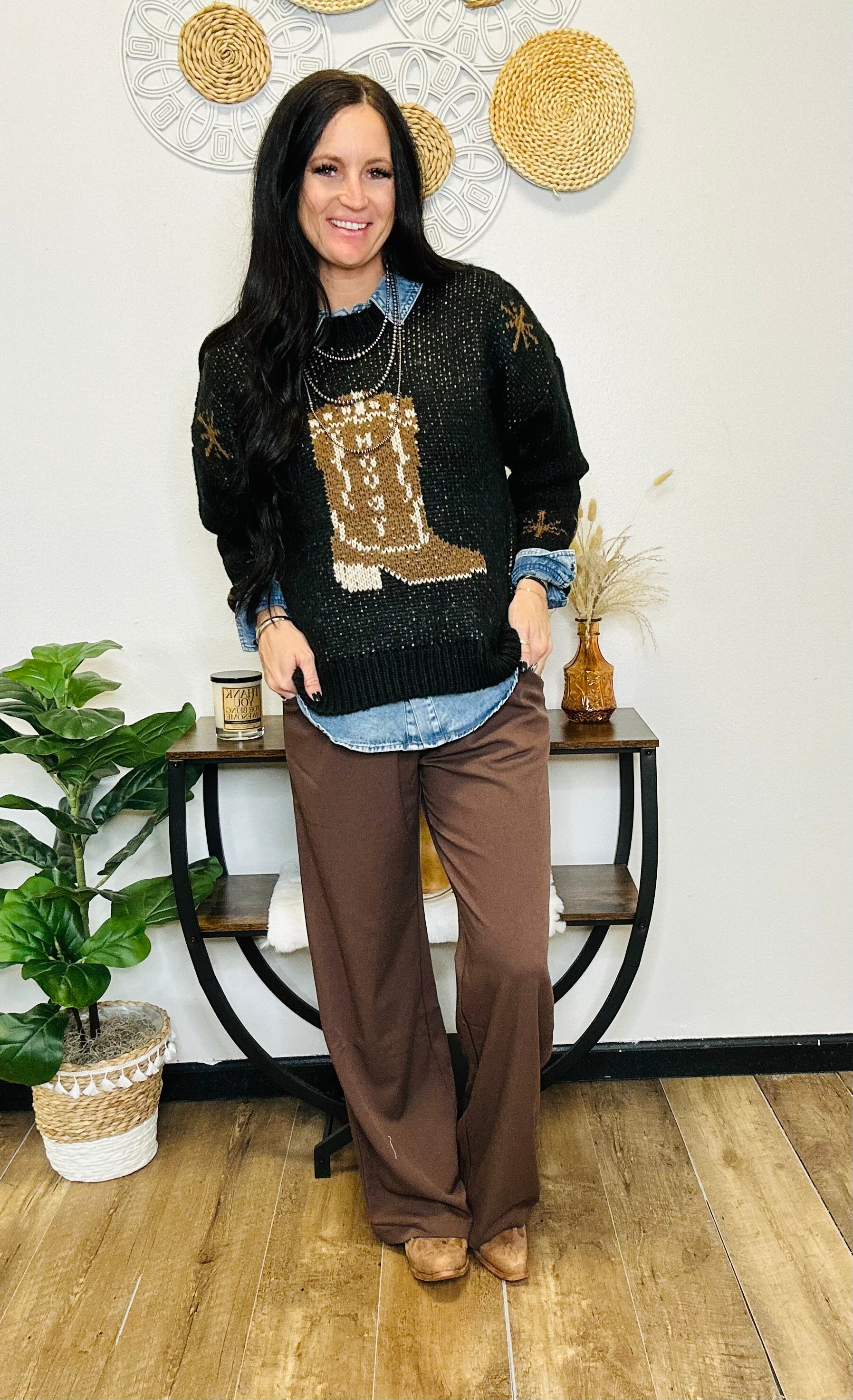 Women's Relaxed Fit Black Sweater with Cowboy Boot Graphis