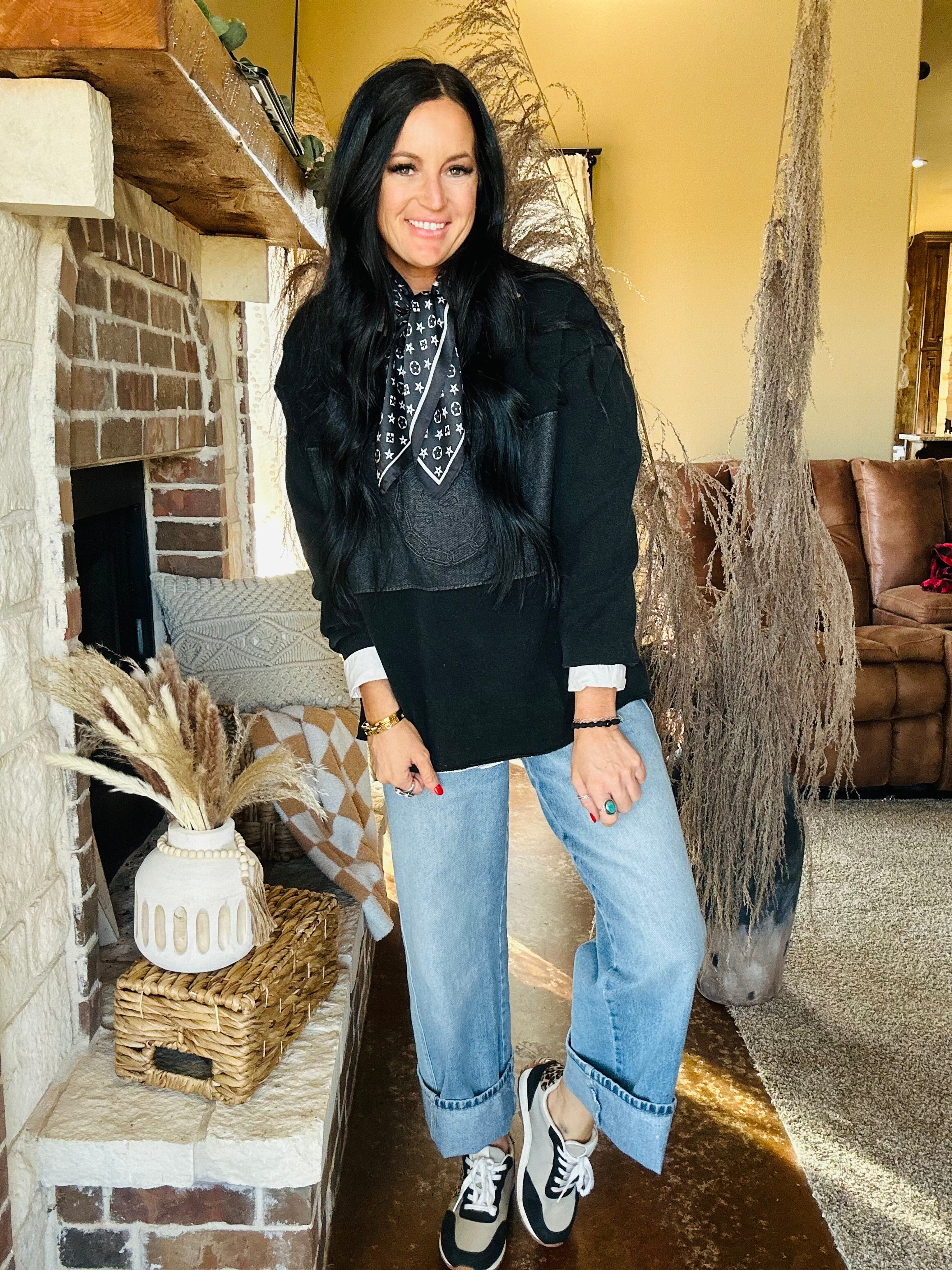 The quarter zip makes it easy to style up or down, and we highly recommend layering it over a button-up for a dressier western-chic look. The oversized fit is relaxed but not overwhelming, and the raw hem gives it that cool, lived-in edge. It’s cozy, unique, and one of those pieces people stop you to ask about.