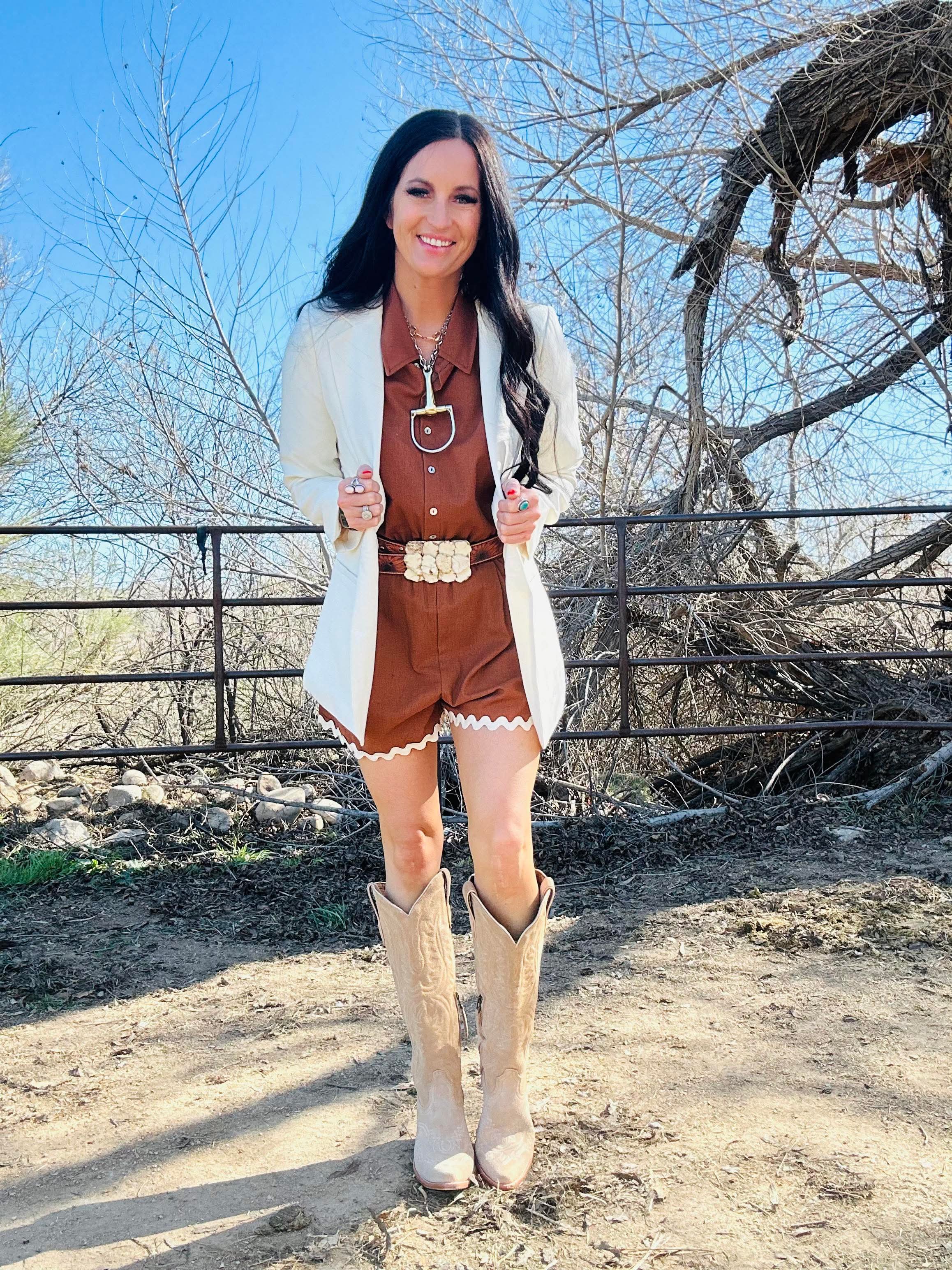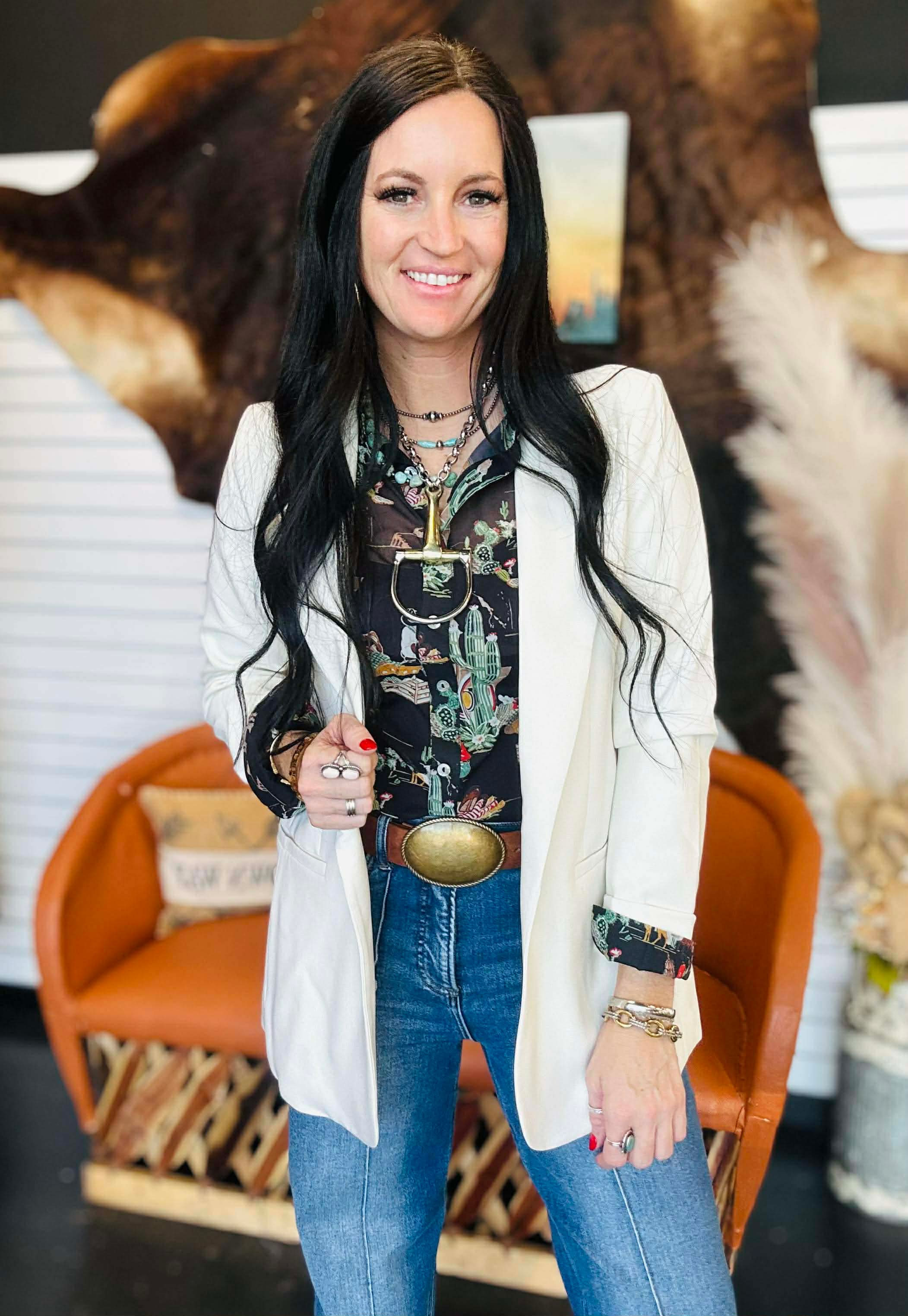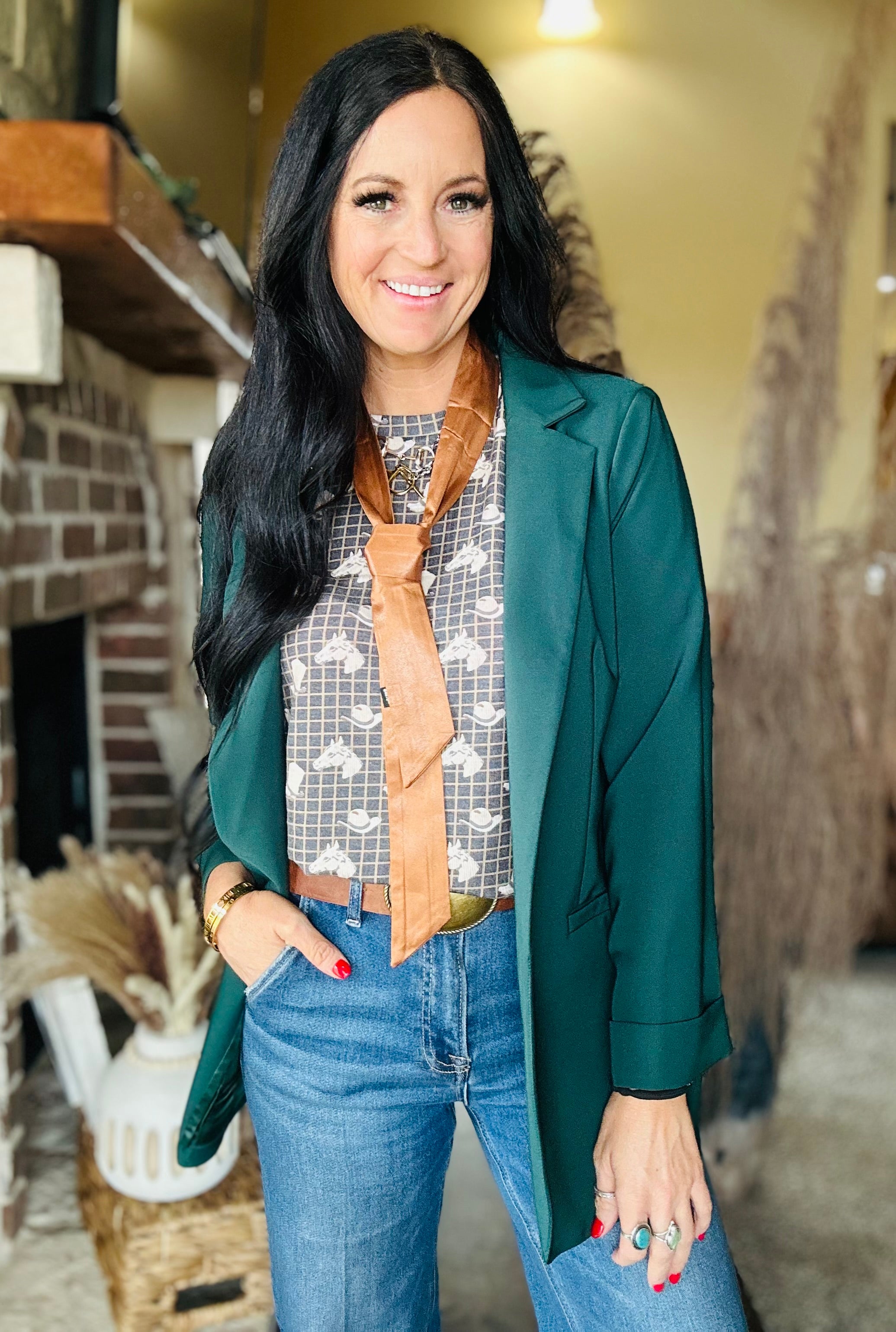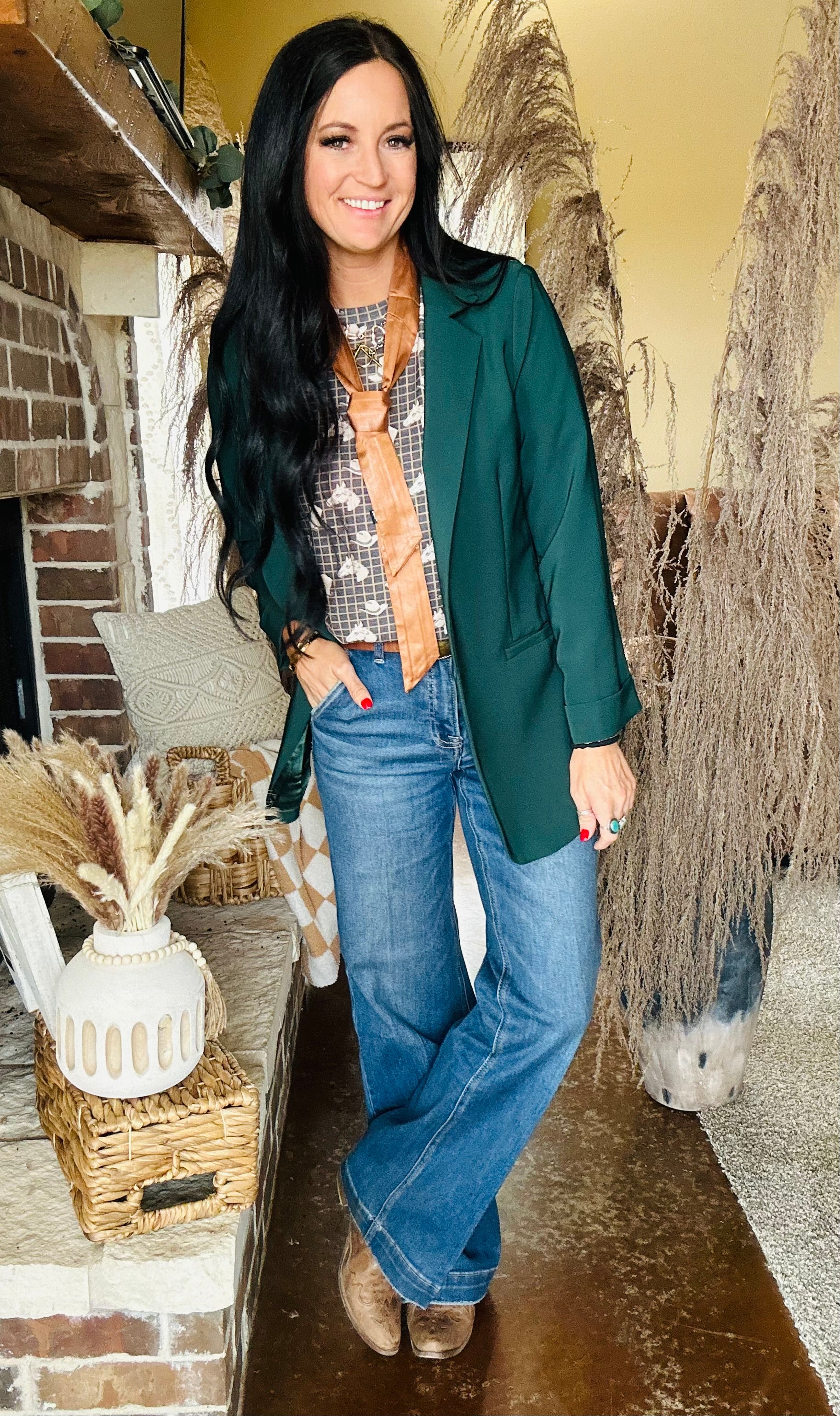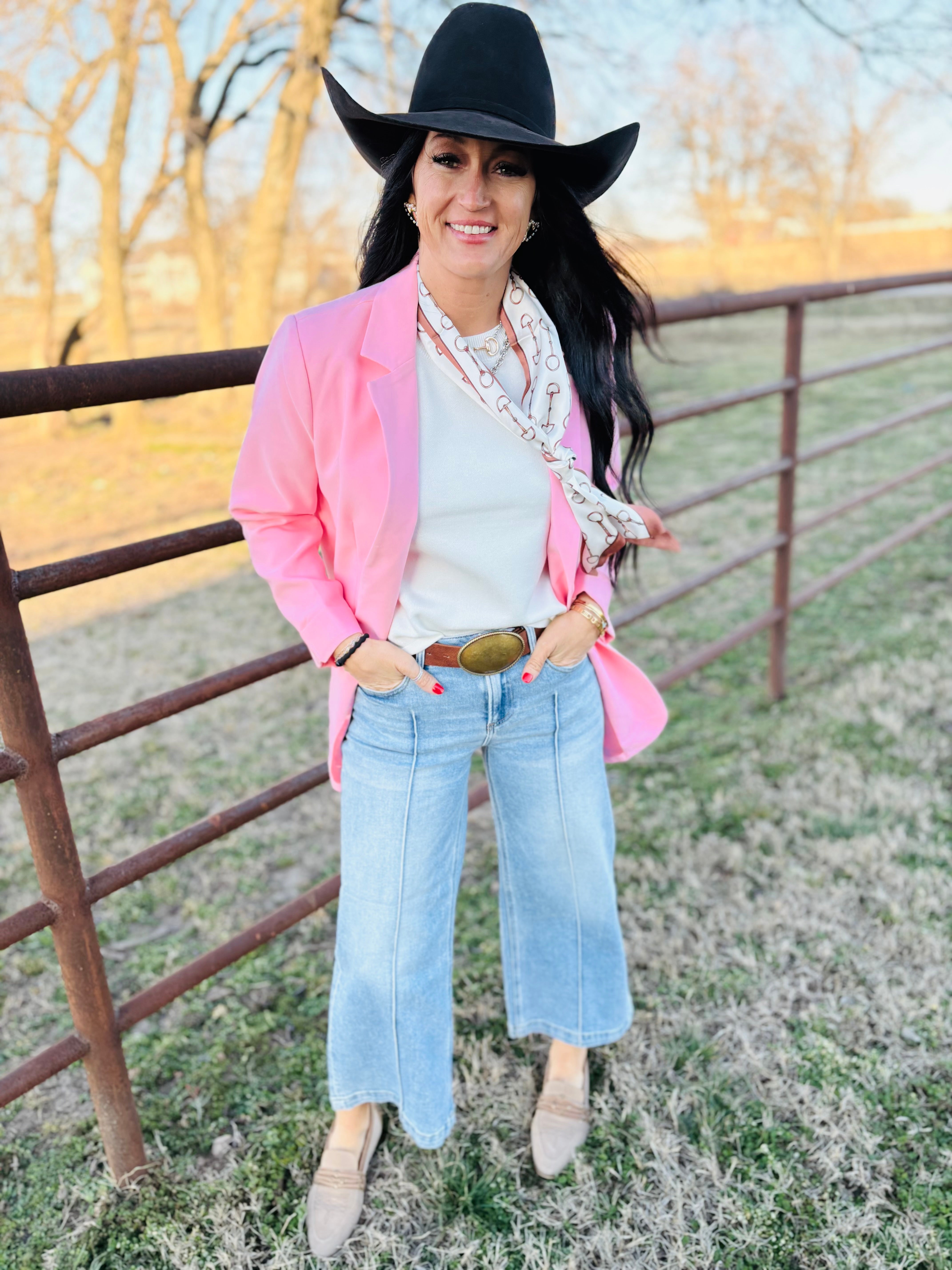 When you’ve got a packed day—work, errands, ballgames, maybe Bible study squeezed in—and you still want to look pulled together, the Ruth Classic Open Front Blazer is your shortcut. This is that one layer you can throw over a tee and jeans and instantly look like you planned your outfit. The clean open front, soft woven fabric, and full lining give it a polished feel, while the longer length keeps you covered and comfortable. Dress it up for the office or church, or toss it on over a graphic tee, denim, and boots for a western chic look that still feels like you.