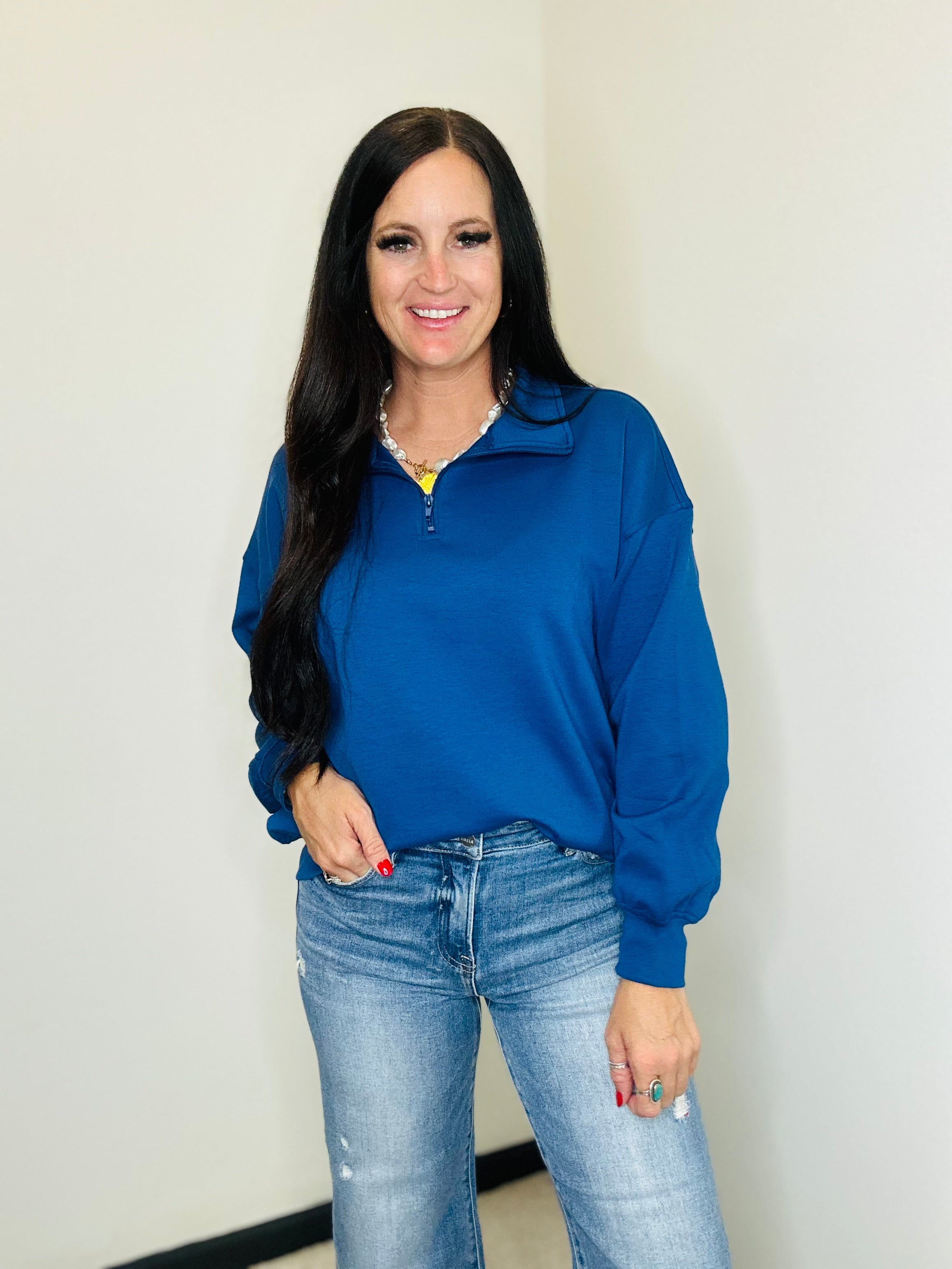 Scuba Half Zip Casual Pullover in Navy - Zuri