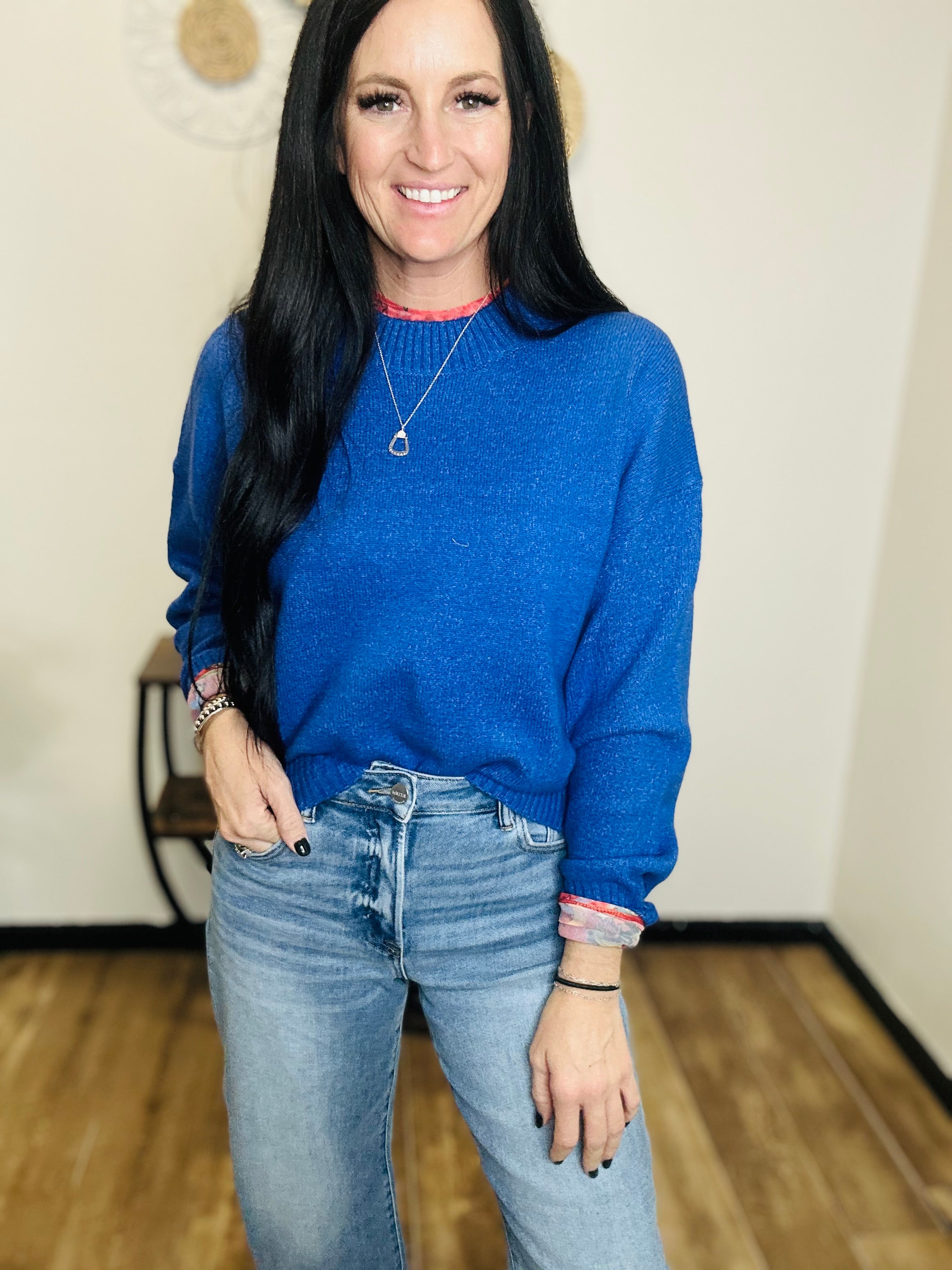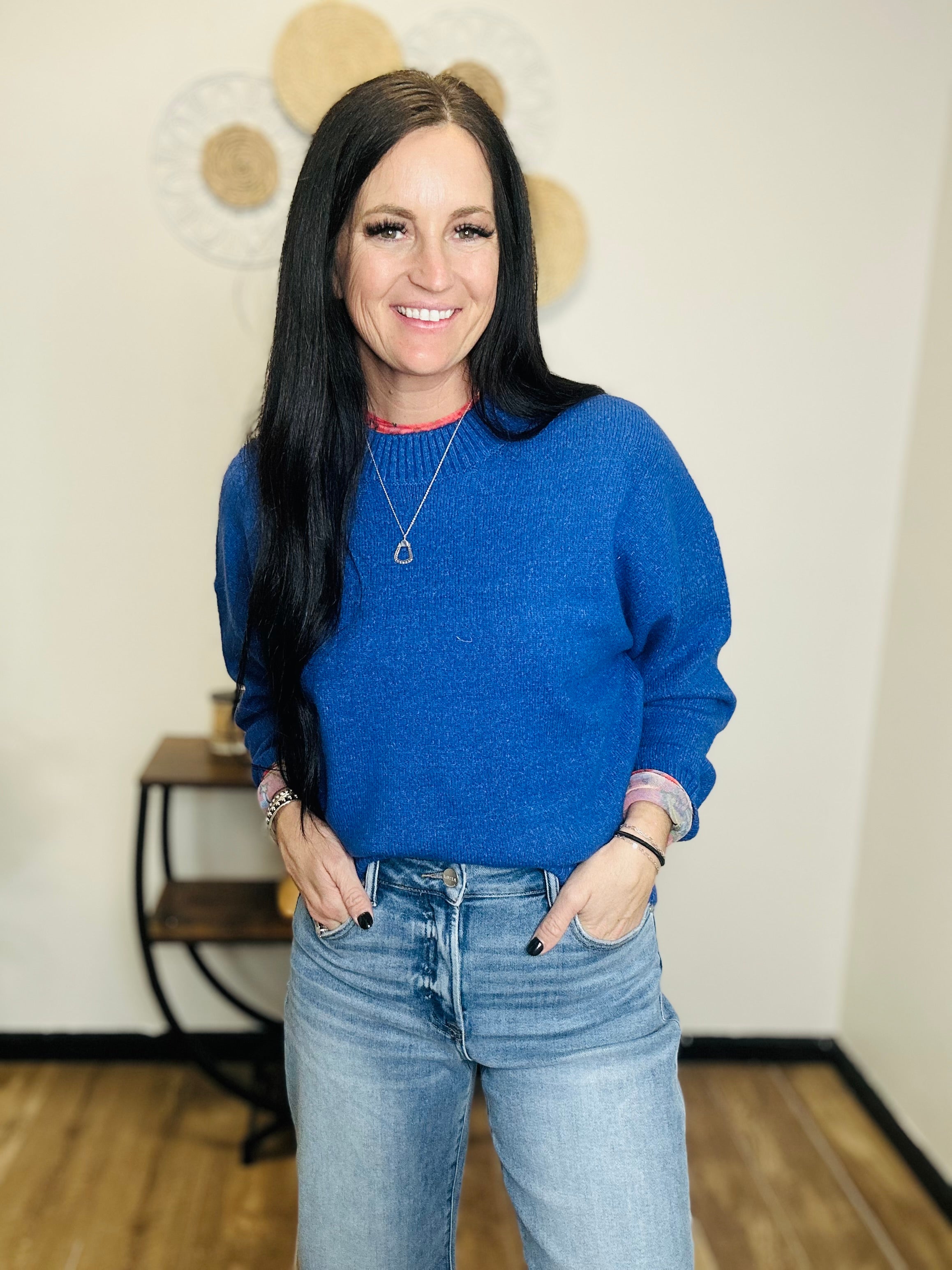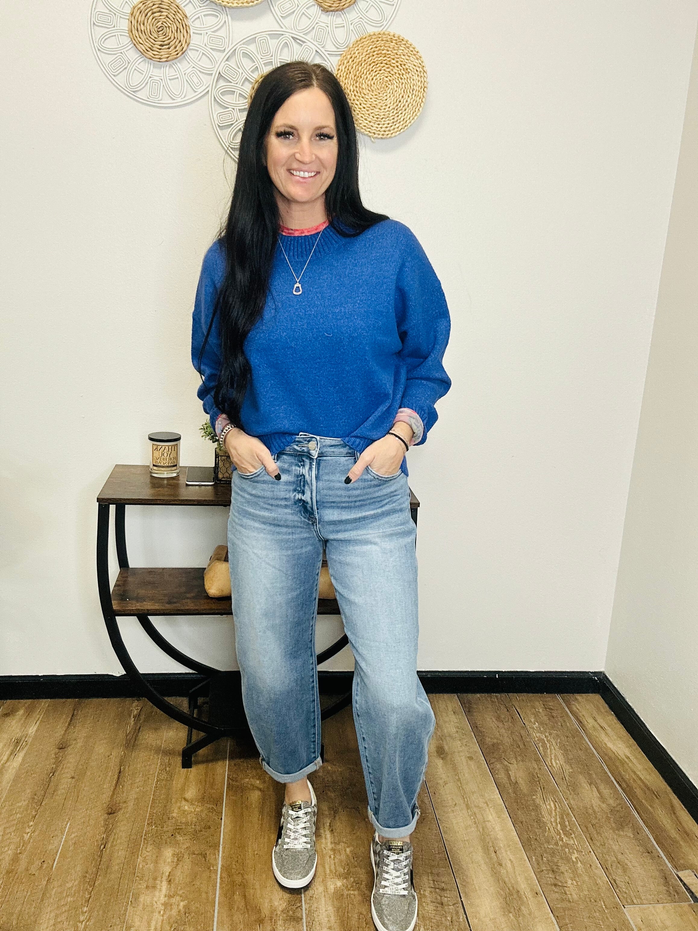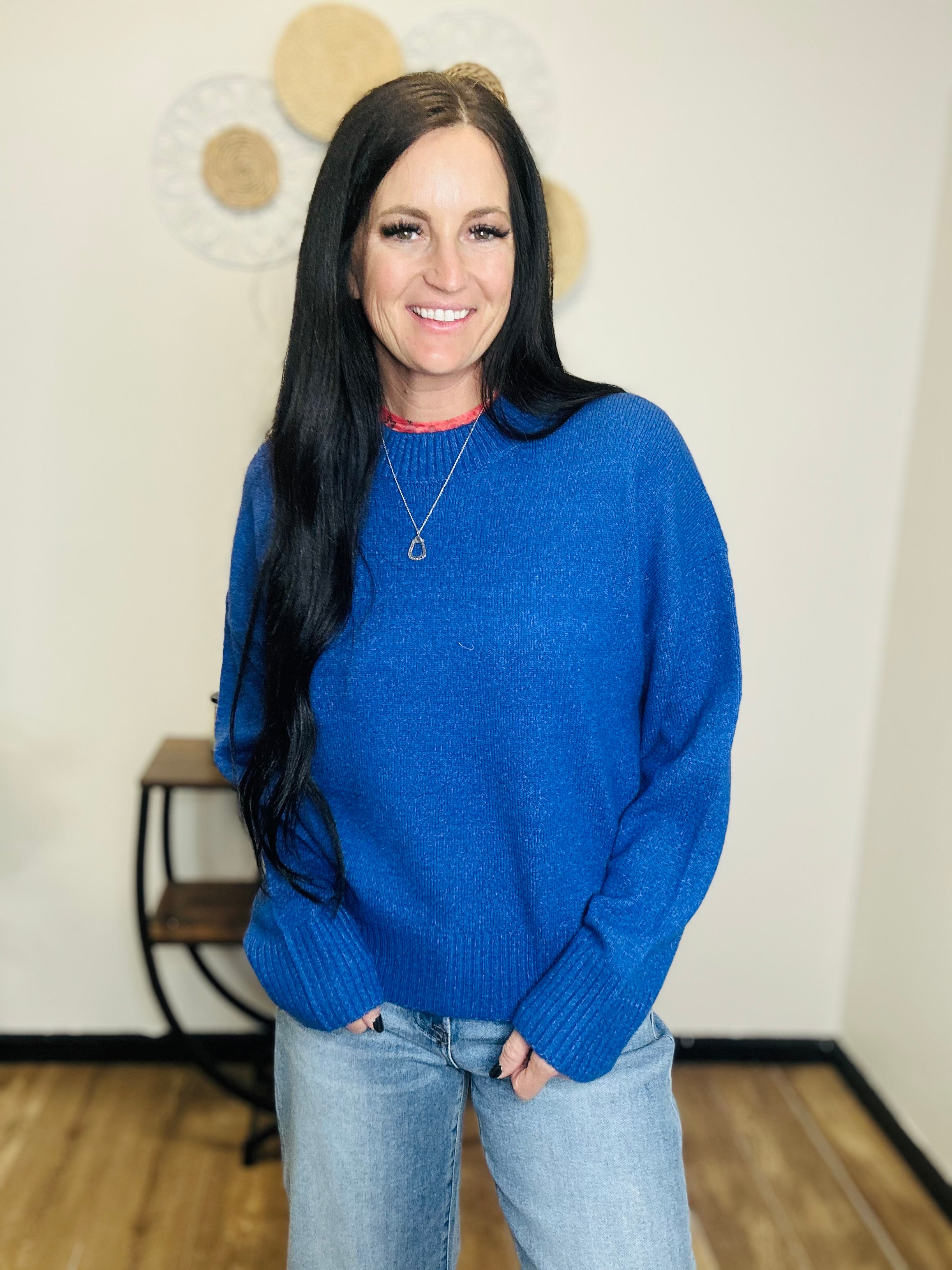 Meet your new go-to sweater: the Remi. Designed in a striking cobalt blue, this crew neck knit combines classic style with modern versatility. The relaxed silhouette makes it easy to wear, while ribbed trim at the neckline, cuffs, and hemline adds just the right touch of structure. Whether layered over a collared shirt for a polished finish or paired with denim for effortless everyday style, this sweater is equal parts cozy and chic—perfect for workdays, weekends, and everything in between.