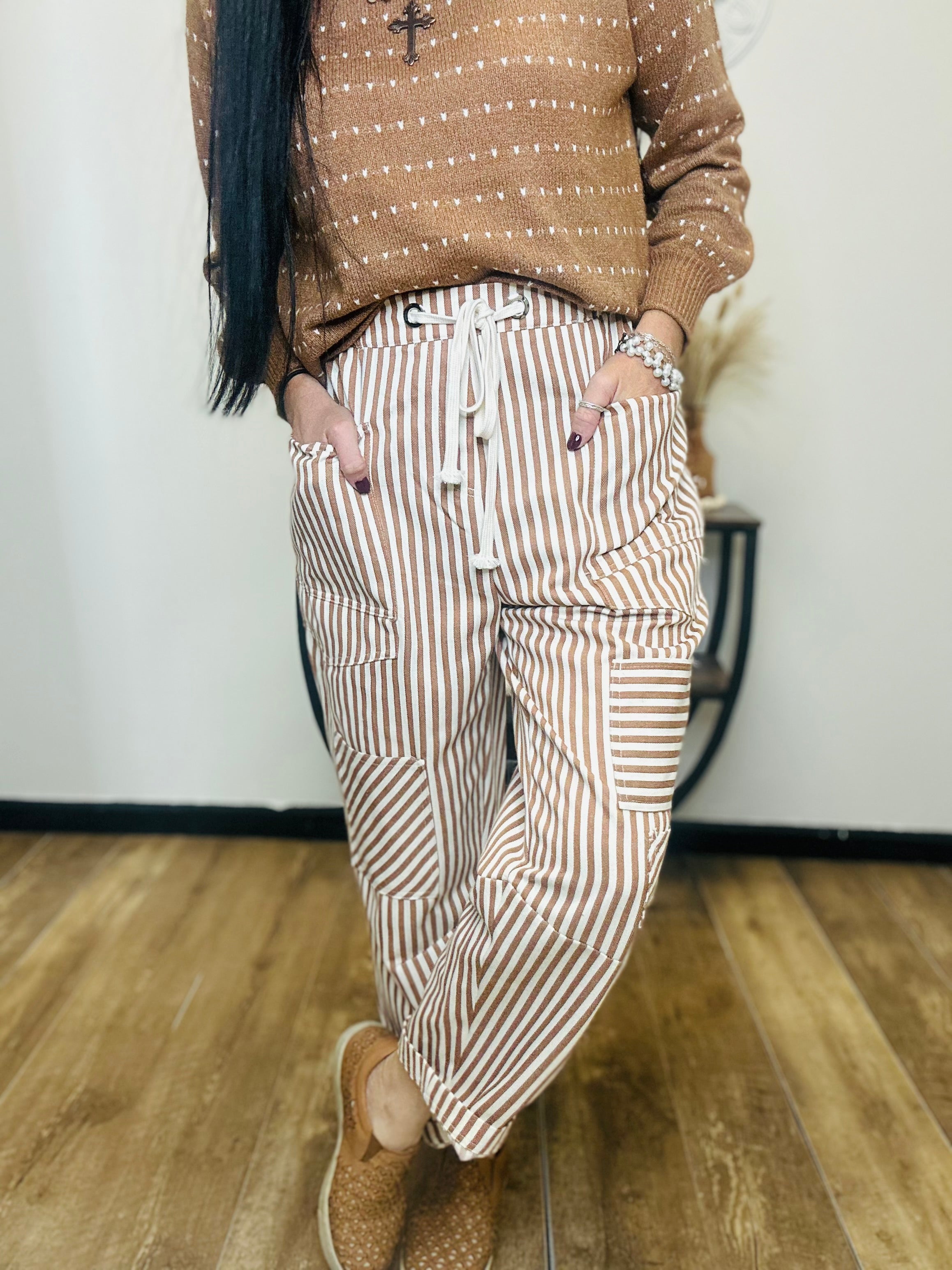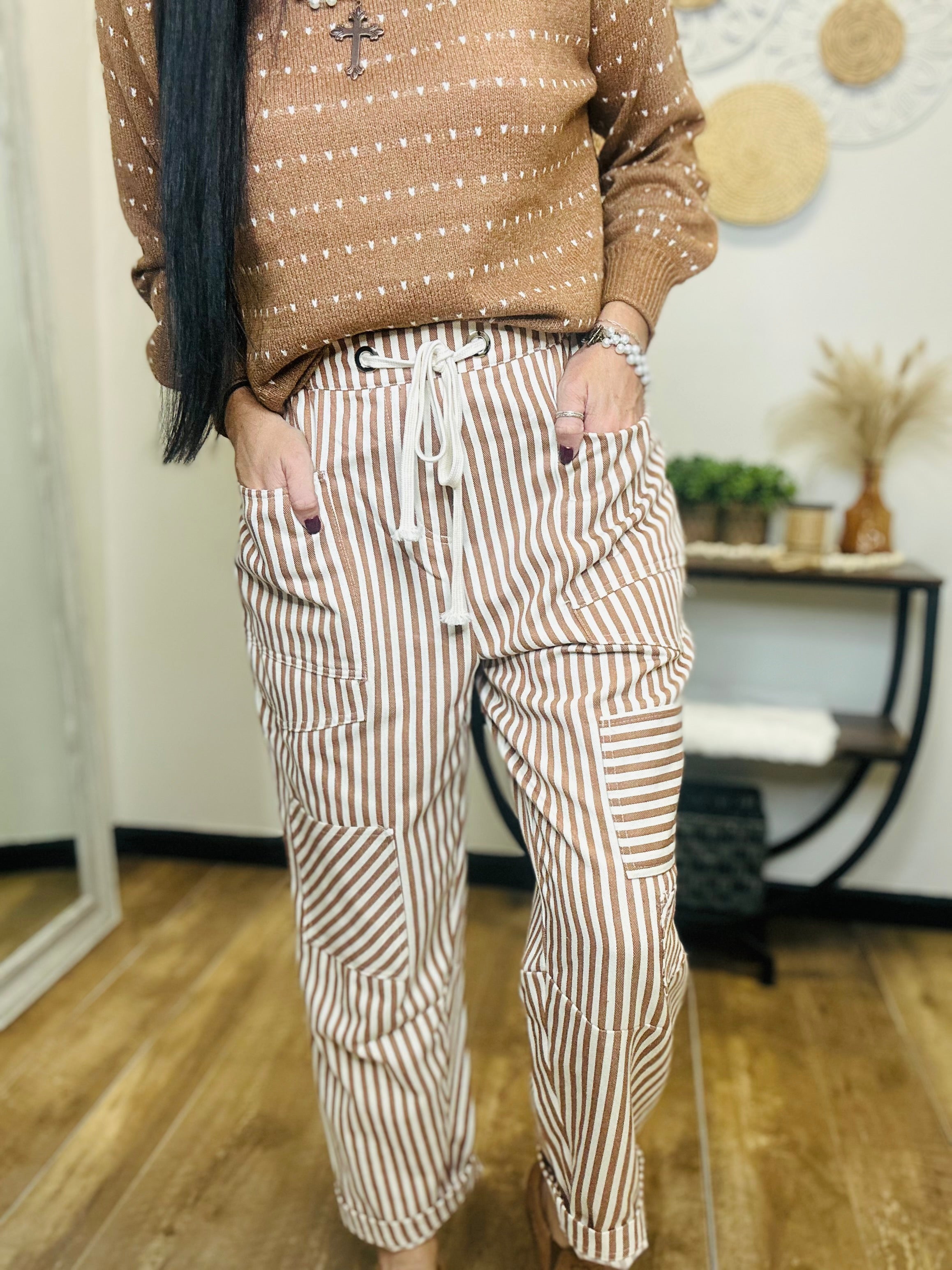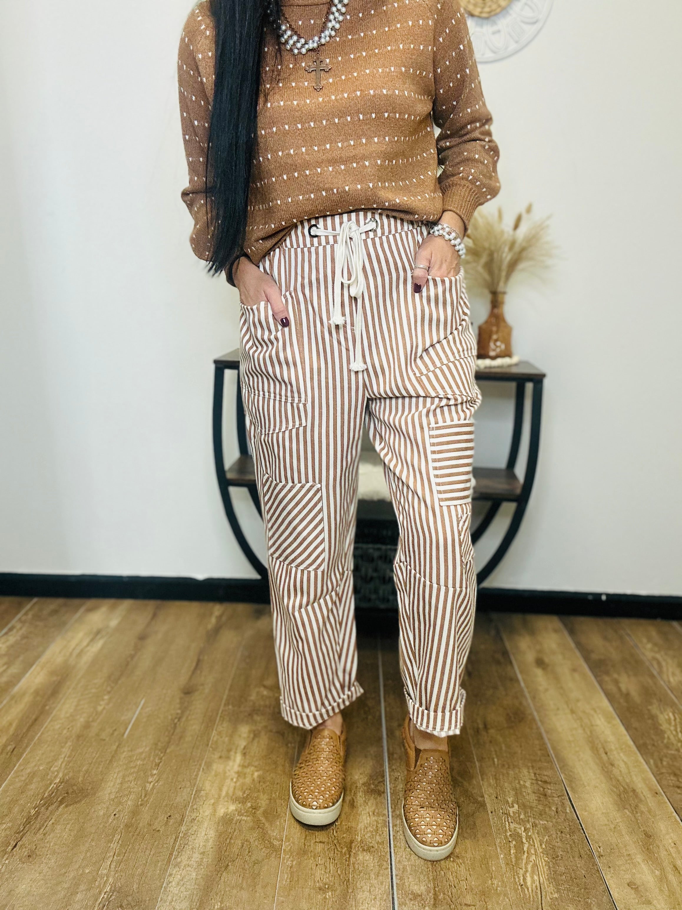 Stripe Patchwork Cropped Barrel Pants - Silas | Motis and Co Boutique – Motis & CO